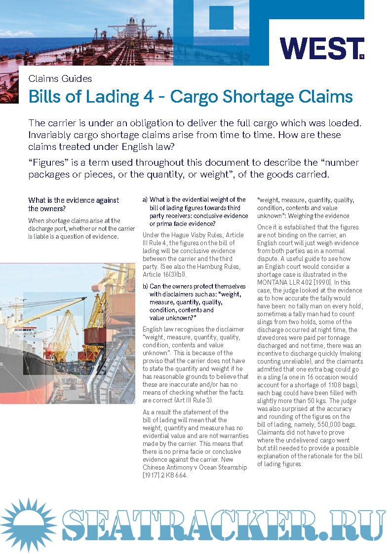 Bills of Lading: Cargo Shortage Claims PDF (389.3 KB)