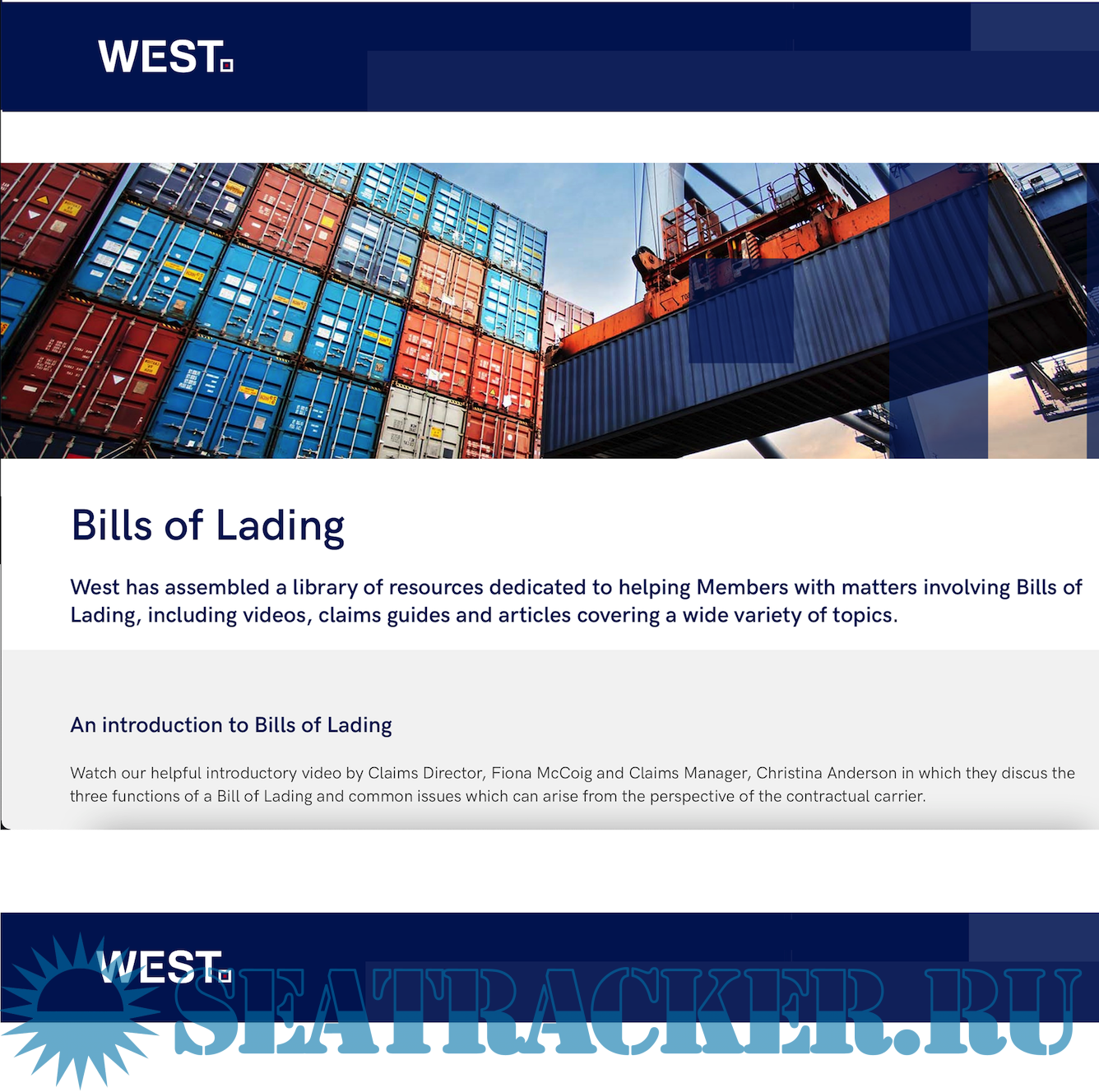 Description: West has assembled a library of resources dedicated to helping with matters involving Bills of Lading, including videos, claims guides and articles covering a wide variety of topics.