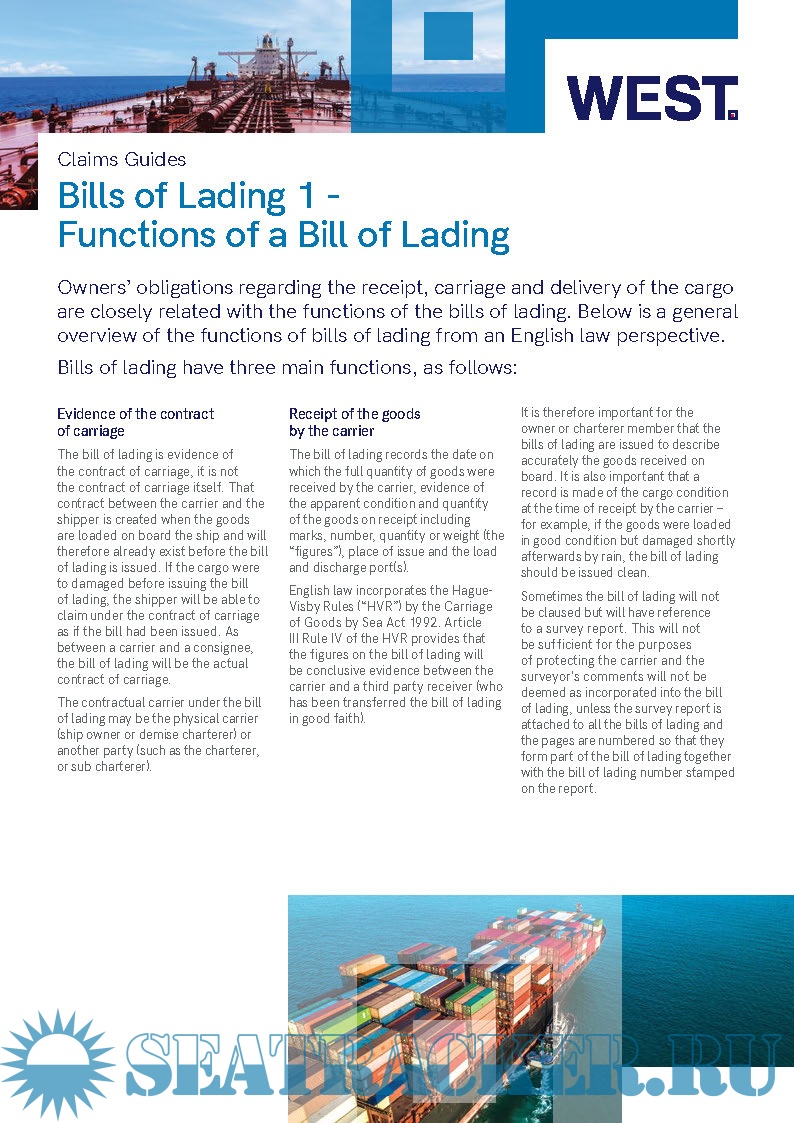 Claims Guides (.pdf):Bills of Lading: Functions of a Bill of Lading PDF (152.5 KB)