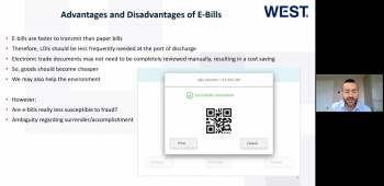 Video 2 (.mp4): Electronic Bills of Lading Webinar | In this video we cover delivery of cargo without original bills of lading: claims by banks, Letters of Indemnity and Electronic Bills of Lading.