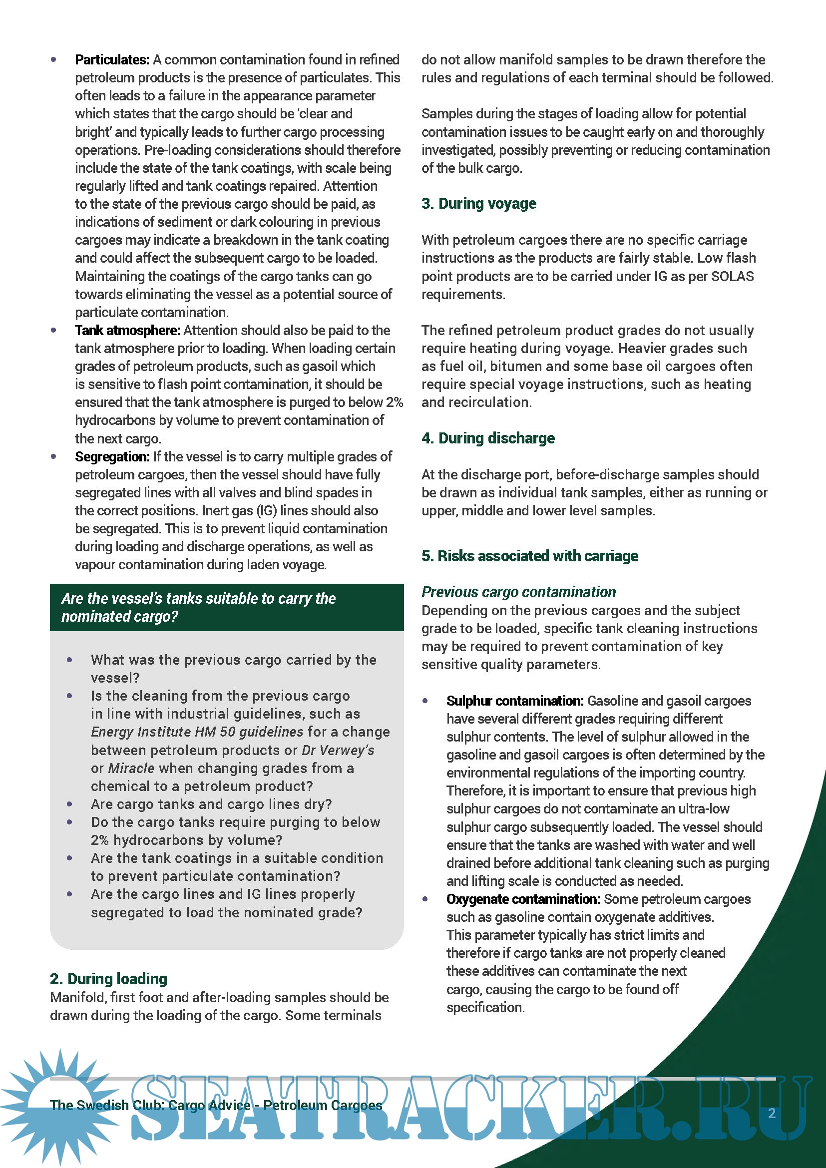 Description: The Swedish Club recently launched a cargo advice Guide, focusing on petroleum cargoes shipments.