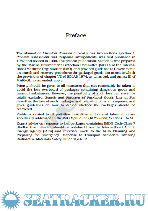 Year: 2007 Language: english Author: IMO Genre: Manual Format: PDF Quality: eBook Pages count: 52 Description: IMO - MANUAL ON CHEMICAL POLLUTION - SECTION 2 - SEARCH AND RECOVERY OF PACKAGED GOODS LOST AT SEA - 2007 ED