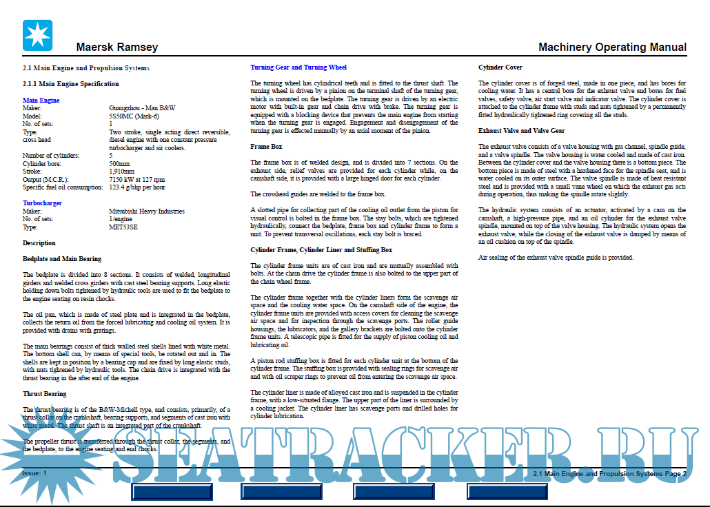 CPT Maersk Ramsey – IMO 9275268 - Machinery Operating Manual