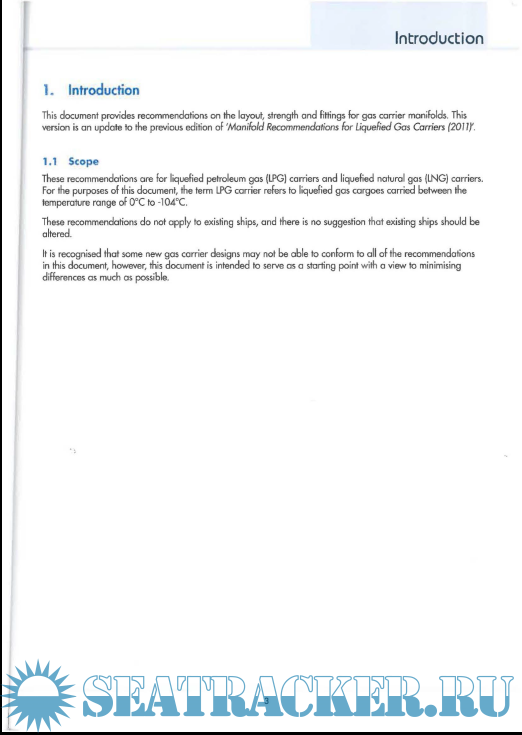 Description: Recommendations For Liquefied Gas Carriers Manifolds - ed 2018 - These recommendations are for liquefied petroleum gas (LPG) carriers and liquefied natural gas (LNG) carriers.