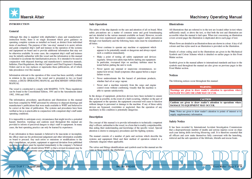 Container MV Maersk Altair - IMO 9342499 - Machinery Operating Manual