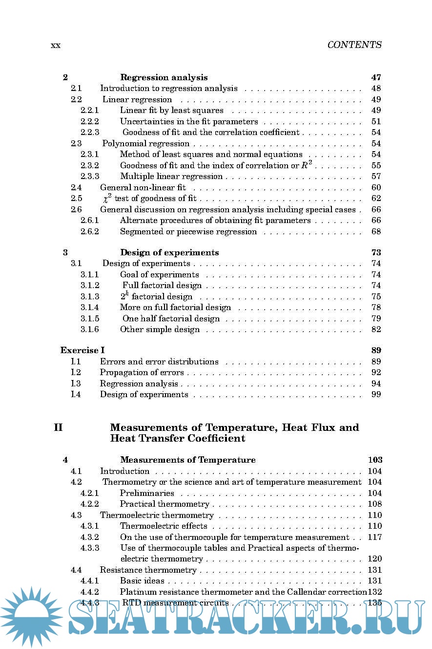 involved in error analysis are discussed in sufficient detail. Concepts such as precision and accuracy are clearly explained. Different statistics useful in experimental studies,.Measurements of Temperature, Heat Flux and Heat Transfer Coefficient,Heat flux and Heat Transfer Coefficient,Measurement of Pressure, Fluid velocity, Volume flow rate, Stagnation and Bulk mean temperatures,Force/Acceleration, torque and power,Data Manipulation and Examples from laboratory practice.