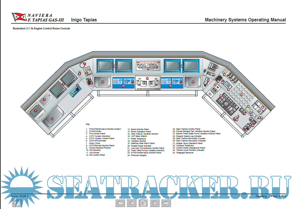 Year: 2003 Language: english Author: WMT Genre: Manual Format: PDF Quality: eBook Pages count: 384 Description: CATALUNYA SPIRIT is a LNG carrier built in 2003 by ASTILLERO LA NAVAL - SESTAO, SPAIN. Currently sailing under the flag of Spain. It's gross tonnage is 90835 ton amd DWT 77204 tons - he cargo system is based on four NO96-E2 membrane type tanks designed by Gaz Transport/Technigas. The LNG of SG 0.46 has to be stored at -163°C. The maximum boil-off rate is 0.15%. These tanks use Invar stainless steel with a 36% Nickel content for both the primary and secondary barriers. Between the two barriers are perlite granules in plywood containers. The cargo capacity is 138.189 m³ or 135.930 m³ at 98.5% full.