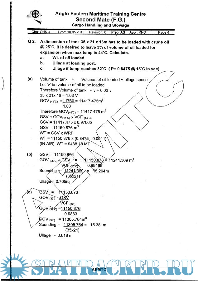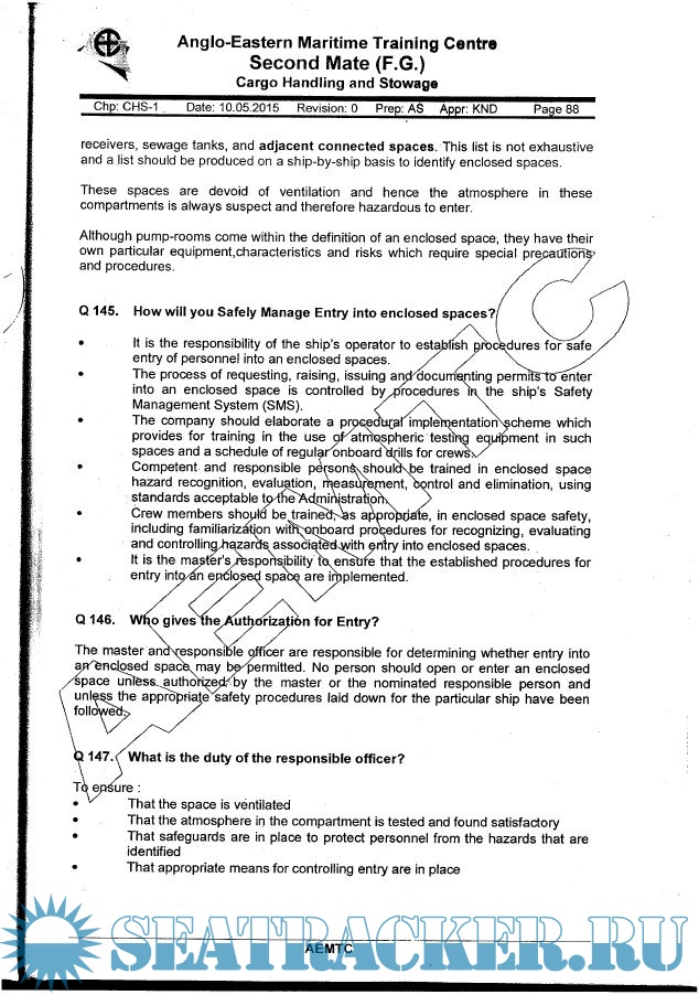 Second Mates FG Course Handout: Cargo Handling and Stowage Questions and Answers - AEMTC [2018, PDF]