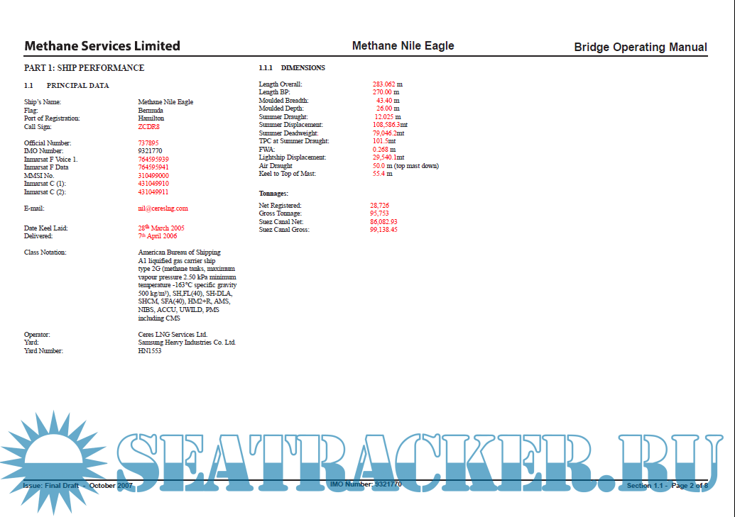 LNGC Methane Nile Eagle - IMO 9321770 - Bridge Operating Manual