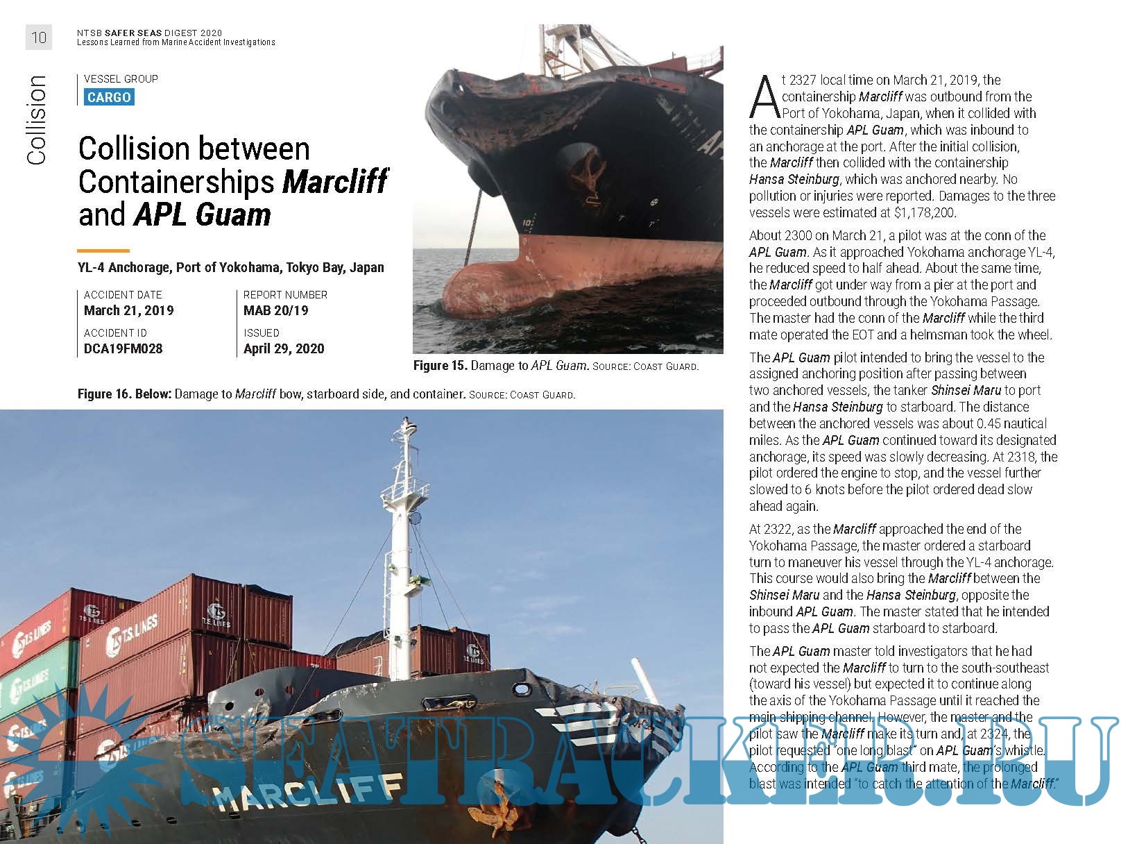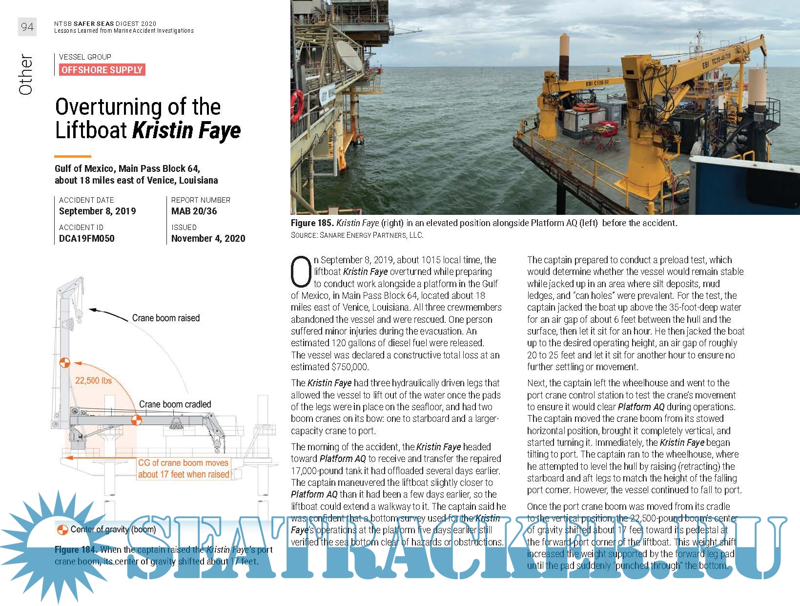 Description: The National Transportation Safety Board (NTSB) of the United States has published their SAFER SEAS Digest 2020, being lessons learned from marine accident investigations. The NTSB determines the probable cause of the accidents and issues safety recommendations aimed at preventing future accidents.
