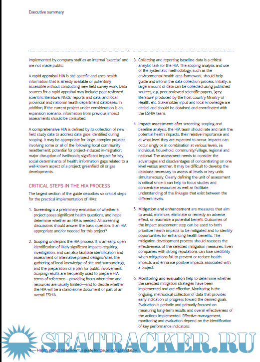 positive and negative impacts of programmes, projects,and policies on public health. These can then be addressed