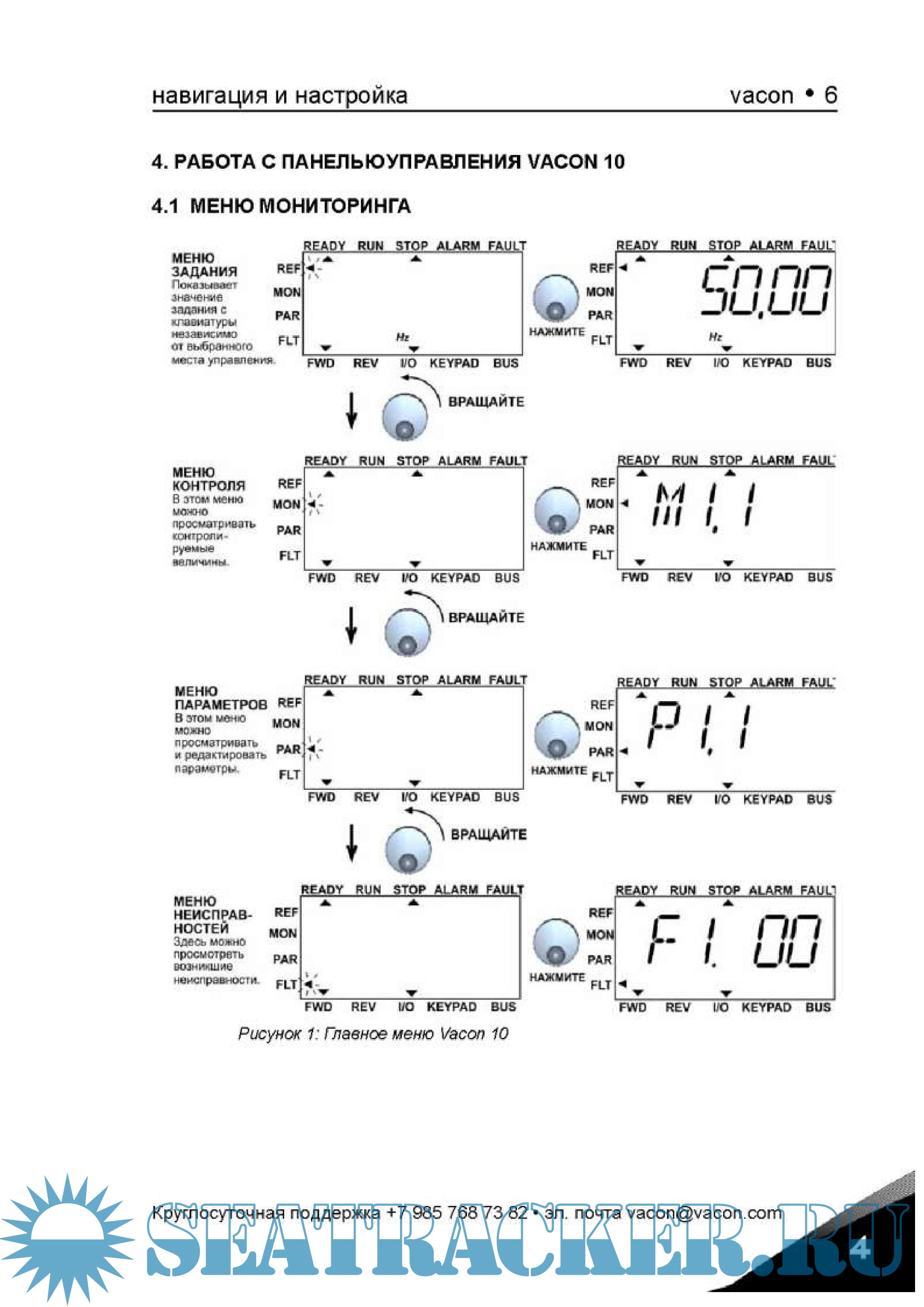 Полное описание меню , подменю с изменениями характеристик и настроек , так же присутствуют коды отказов.