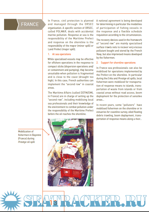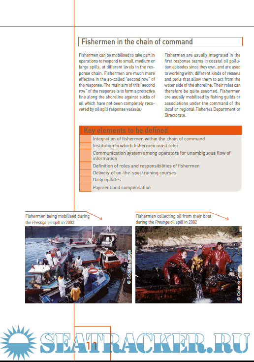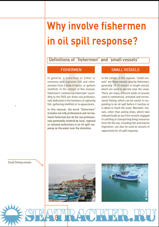 In this manual, the word “fishermen” includes not only professional and recreational fishermen but all the sea professionals potentially involved by local, regional or national authorities in an oil spill response on the water near the shoreline.