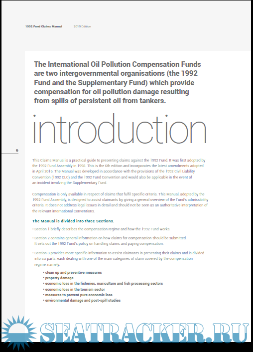 Year: 2019 Language: english Author: IOPC FUND Genre: Guide Format: PDF Quality: eBook Pages count: 45 Description: The compensation regime was originally established in 1978 and is now based on two Conventions: the 1992 International Convention on Civil Liability for Oil Pollution Damage (1992 Civil Liability Convention) and the 1992 International Convention on the Establishment of an International Fund for Compensation for Oil Pollution Damage (1992 Fund Convention). A Protocol to the 1992 Fund Convention was adopted in 2003, which established a Supplementary Fund (Supplementary Fund Protocol).