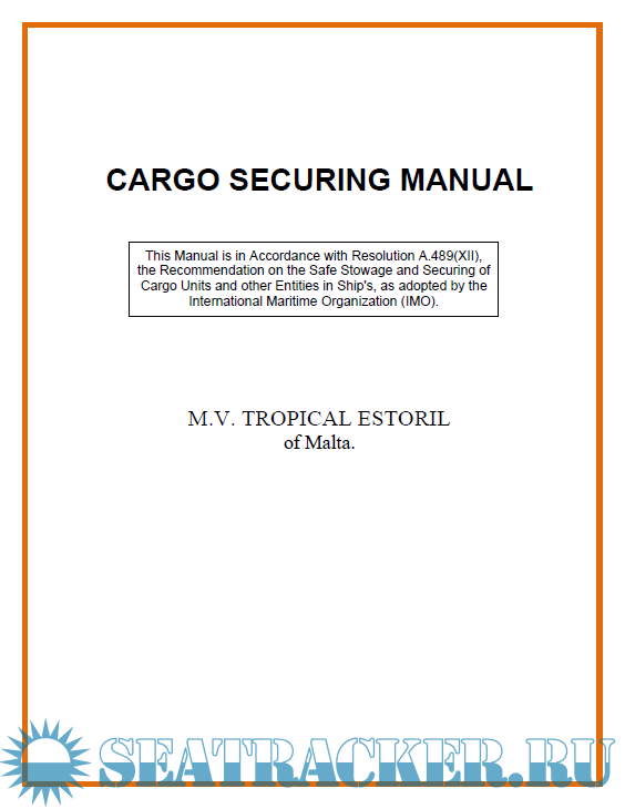 Description: This Manual is in Accordance with Resolution A.489(XII), the Recommendation on the Safe Stowage and Securing of Cargo Units and other Entities in Ship's, as adopted by the International Maritime Organization (IMO).