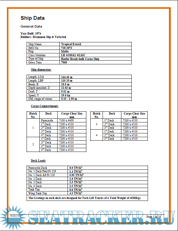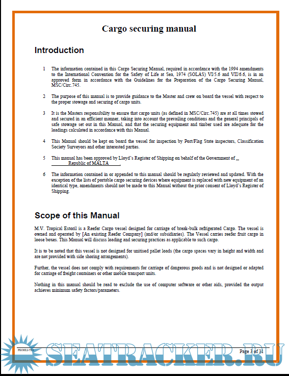 Mv TROPICAL ESTORIL - Cargo Securing Manual