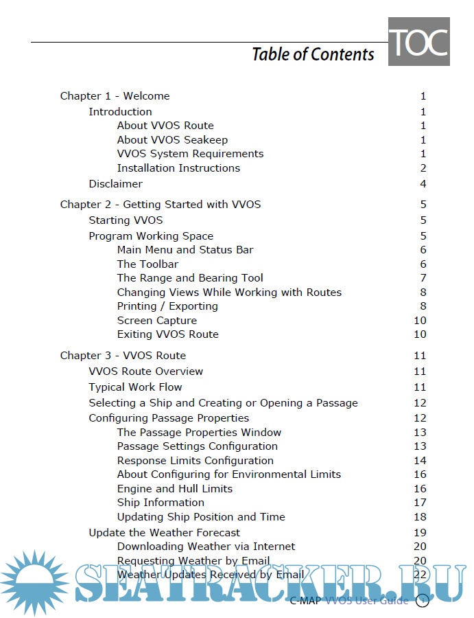 Year: 2xxx Language: english Author: CMap Genre: Guide Format: PDF Quality: eBook Pages count: 100 Description: C-MAP’s Vessel and Voyage Optimization Solution (VVOS), a highly advanced decision support solution intended to meet the needs of vessel masters and shore-side managers as they plan and execute safe, efficient passages. VVOS consists of two modules: VVOS Route and VVOS Seakeep. These two applications are designed to work together to enable masters to optimize their passages.