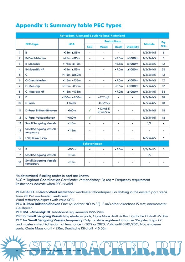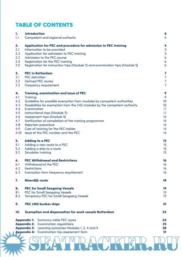 Description: This information guide contains information about the procedures and preconditions for obtaining an exemption from compulsory pilotage in the Rotterdam-Rijnmond seaport region. This region consists of two seaport areas: the Rotterdam-Rijnmond-South-Holland-hinterland seaport area and the Scheveningen seaport area. In this guide, the English term ‘Pilotage Exemption Certifcate’ (PEC) is used for this exemption. The contents of the training course on which participants will be tested can be found in the study material made available by the Loodswezen Rotterdam Rijnmond (LRR) pilotage association.