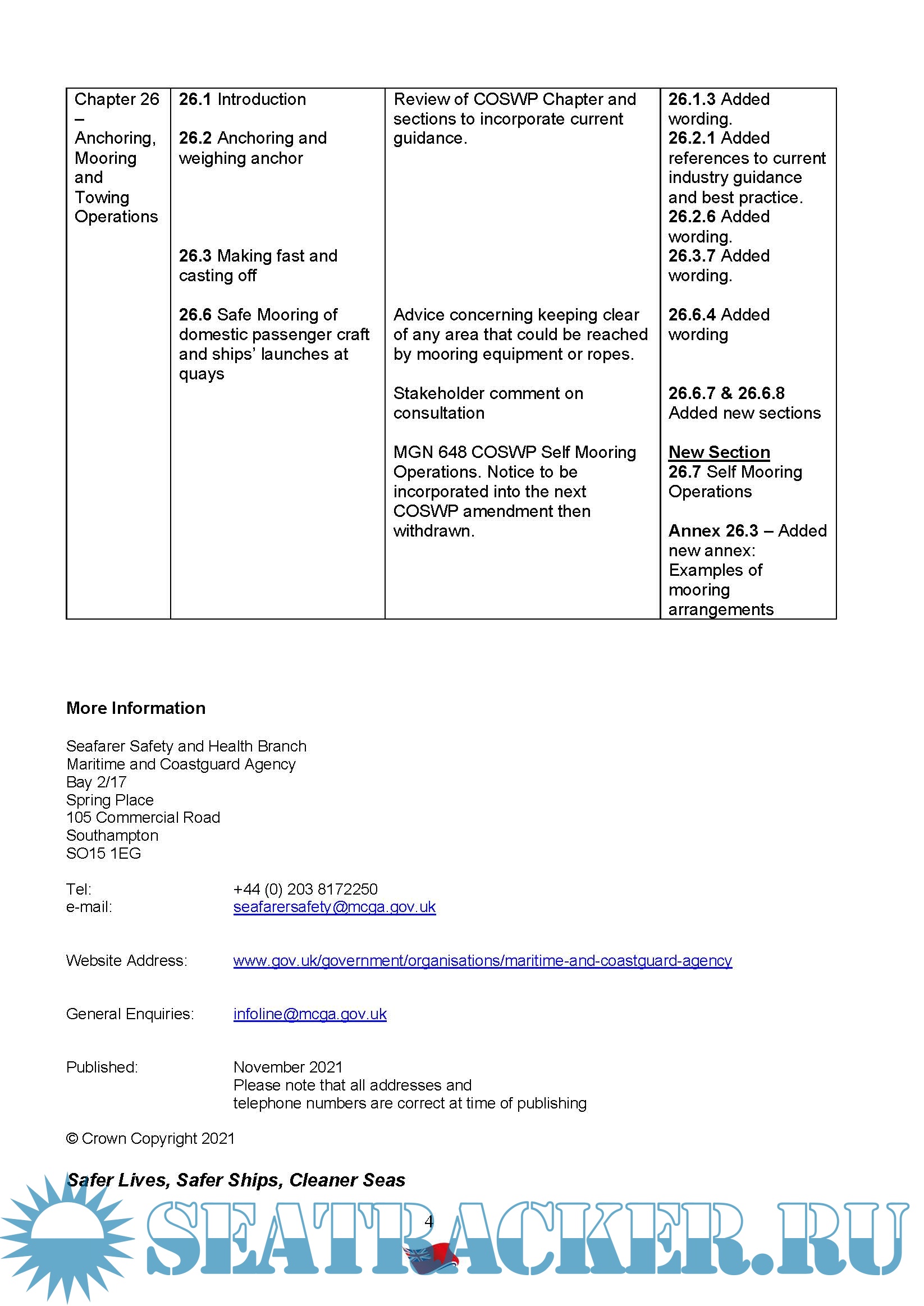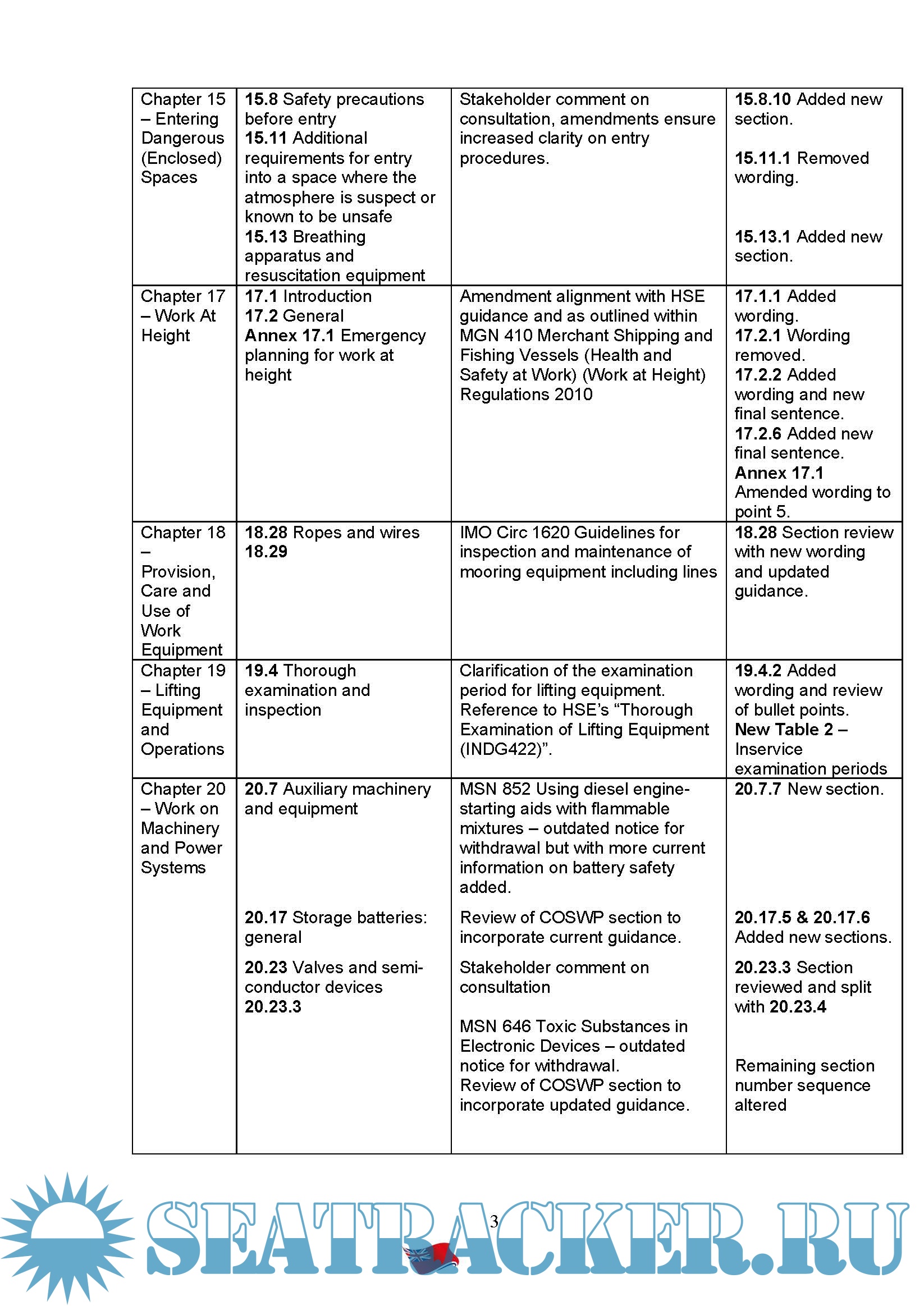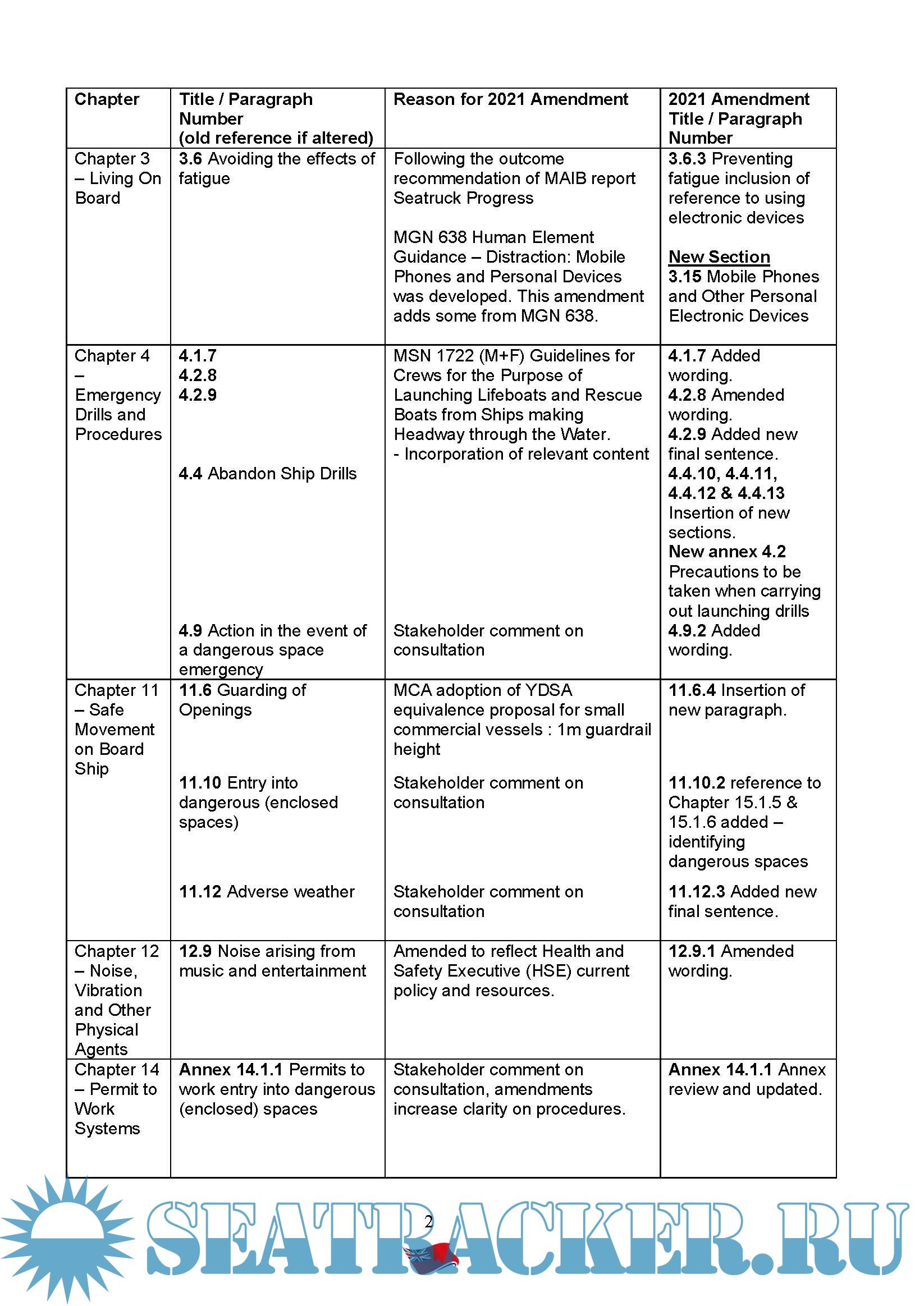 The attached table only summarises the changes that have occurred in the 2021 6th Edition of the Code, following stakeholder engagement and review by the COSWP Working Group, which consists of representatives of the shipping industry, seafarers and seafarers’ unions in collaboration with MCA policy leads.
