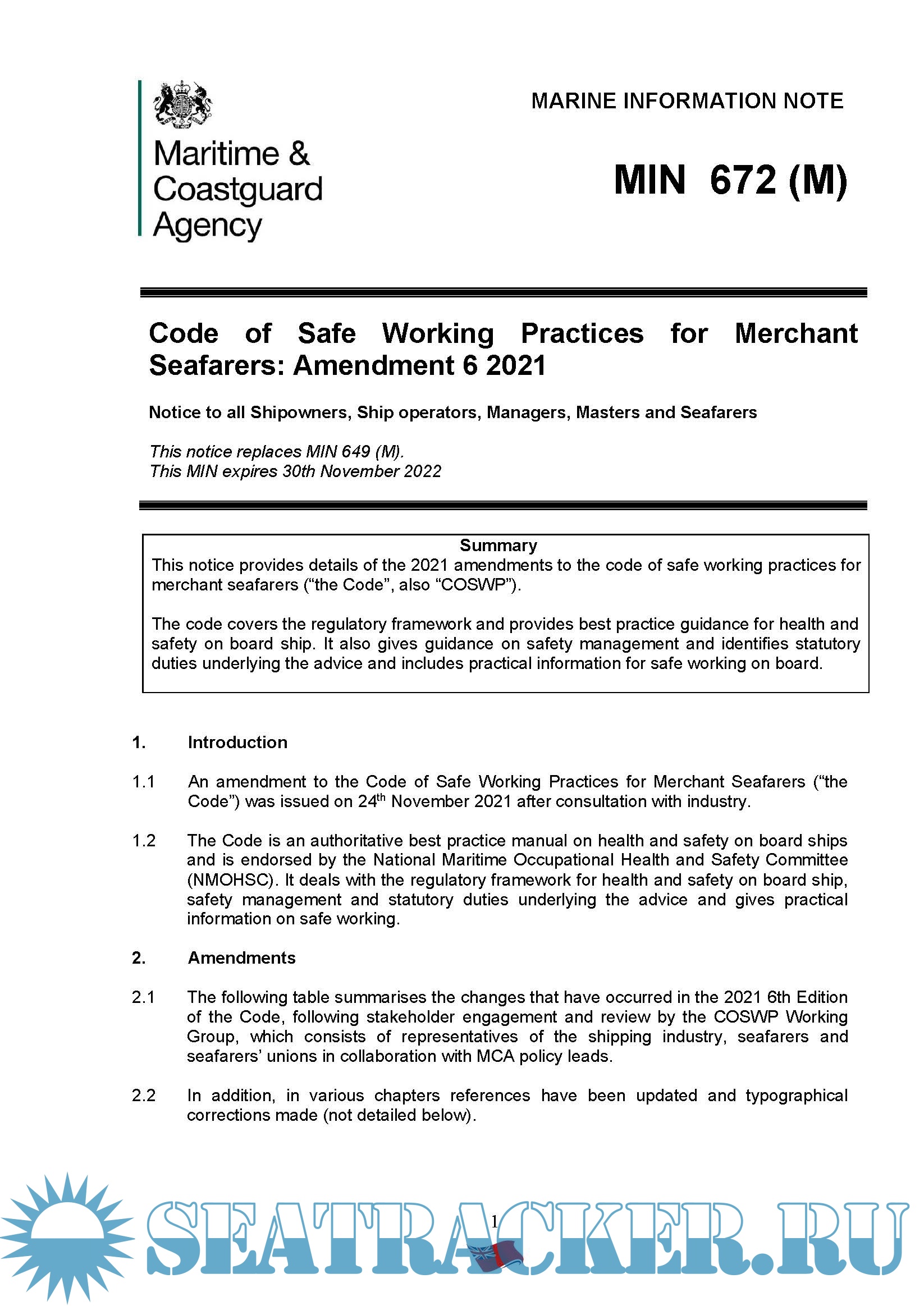 MIN 672 (M) Code of Safe Working Practices for Merchant Seafarers: Amendment 6 2021