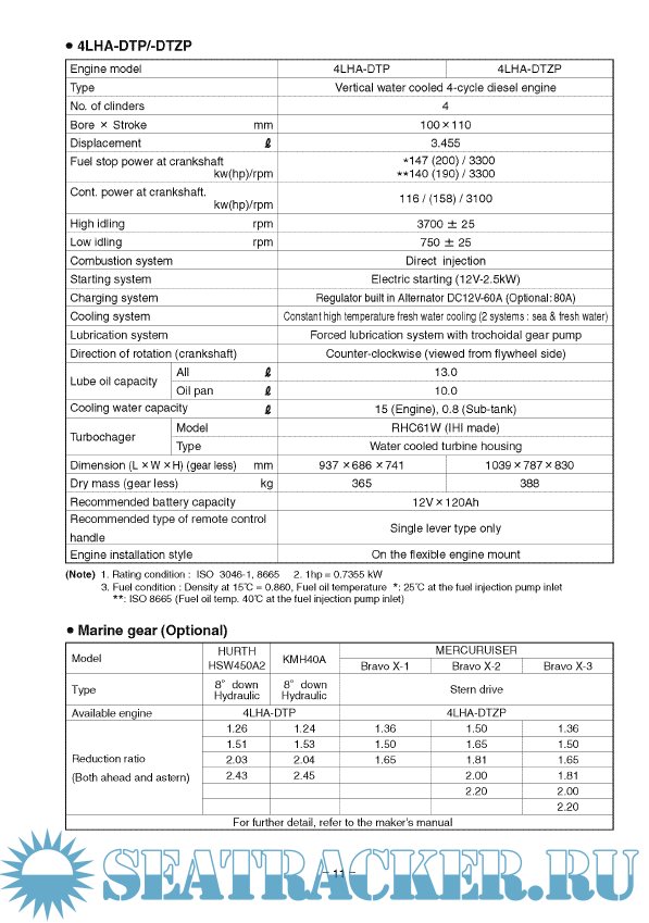 Year: 2017 Language: english Author: YANMAR Diesel Engine Co. Ltd Japan Genre: Manual Format: PDF Quality: eBook Pages count: 466 Description: Yanmar Marine Diesel Engine 4LHA- Variants Operation and Maintenance Manual in different PDFs. Specifications Rated Output - 177 kW / 240 mhp Rated Speed - 3300 rpm Displacement - 3.455 L / 211 cu. in No. of cylinders - 4 cylinders Cylinder Bore x Stroke - 100 mm x 110 mm / 3.94 in x 4.33 in Combustion system -Direct Injection, In-line Pump Aspiration - Turbocharged & Intercooled Alternator - 12V - 80A Dry weight without gear - 365 kg / 805 lbs Dimensions - 1131 mm x 719 mm x 811 mm Controls - Mechanical