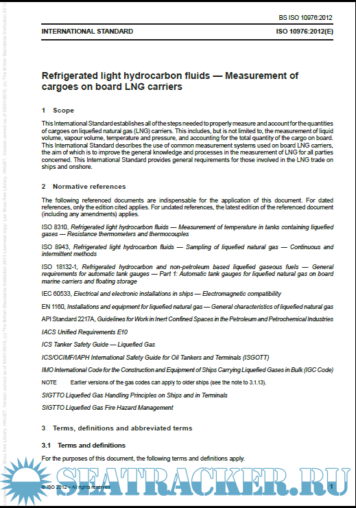BS ISO 10976-2012- Refrigerated light hydrocarbon fluids — Measurement of cargoes on board LNG carriers
