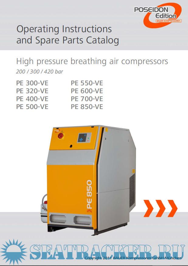Bauer Compressor Poseidon Edition VE - 300-850 Breathing Air Compressor Operating Manual & Spare Parts Catalog