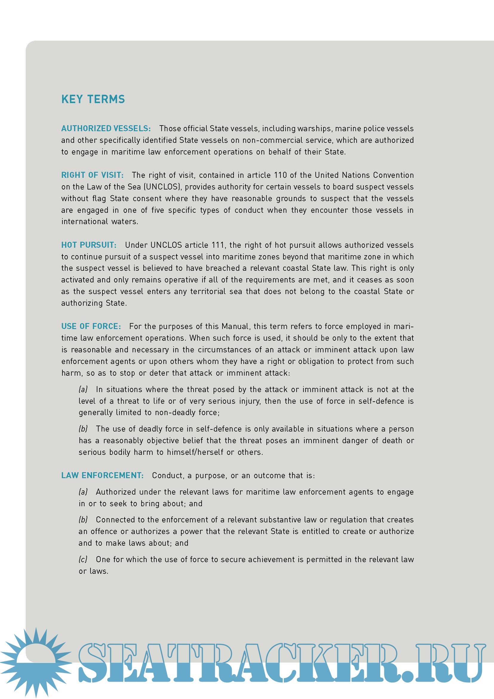 Description: The Global Maritime Crime Programme of the United Nations Office on Drugs and Crime (UNODC) provides Member States with technical support to tackle the full range of transnational maritime crime. The present Manual underpins that technical support, serving both as a training tool for the capacity-building work carried out by the Programme and as a guide for criminal justice practitioners working on maritime cases.