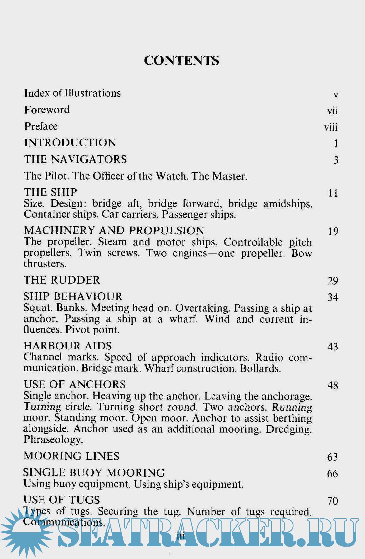 Description: Explains many fundamental principles of ship handling as applied to berthing, unberthing, passing and anchoring. The advantages and disadvantages of motor ships, steamers, bow thrusters and controllable pitch propellers are explained. Particular attention has been given to the effective placement and use of tugs in various situations and there is a summary of developments in tug propulsion from single screw to tractor.