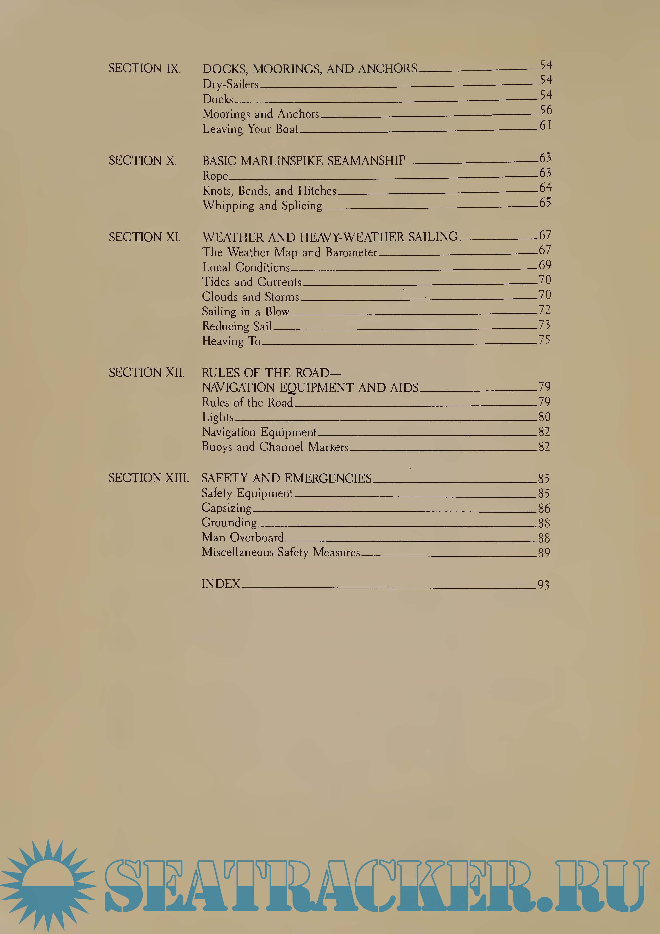 Year: 1991 Language: english Author: Richard Henderson Genre: Handbook Publisher: Contemporary Books, Inc. Edition: Third ISBN: 0-8092-4010-6 Format: PDF Quality: Scanned pages Pages count: 116 Description: "Hand, Reef and Steer is intended primarily as a handbook for beginning sailors, but is also designed to be a handy reference for more experienced sailors.