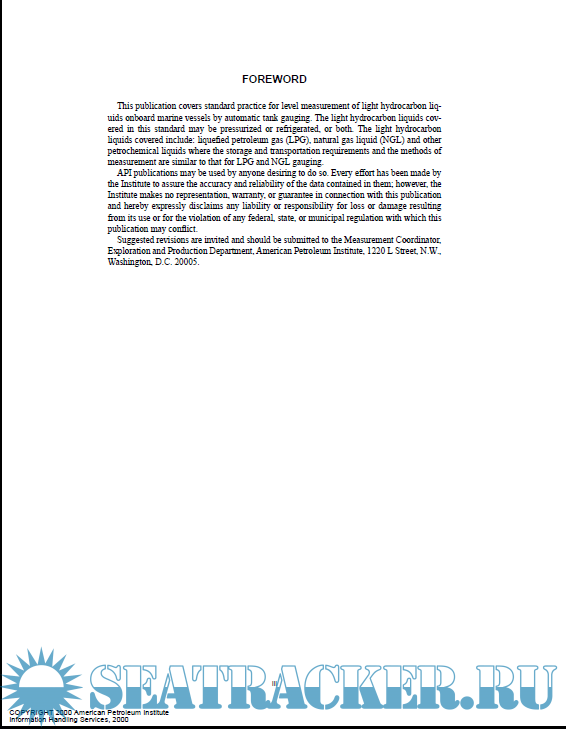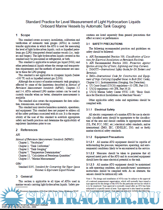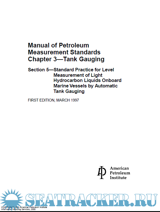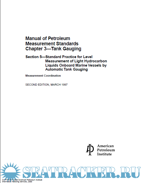 API - Manual of Petroleum Measurement Standards Chapter 3—Tank Gauging - Section 5—Standard Practice for Level Measurement of Light Hydrocarbon Liquids Onboard Marine Vessels by Automatic Tank Gauging