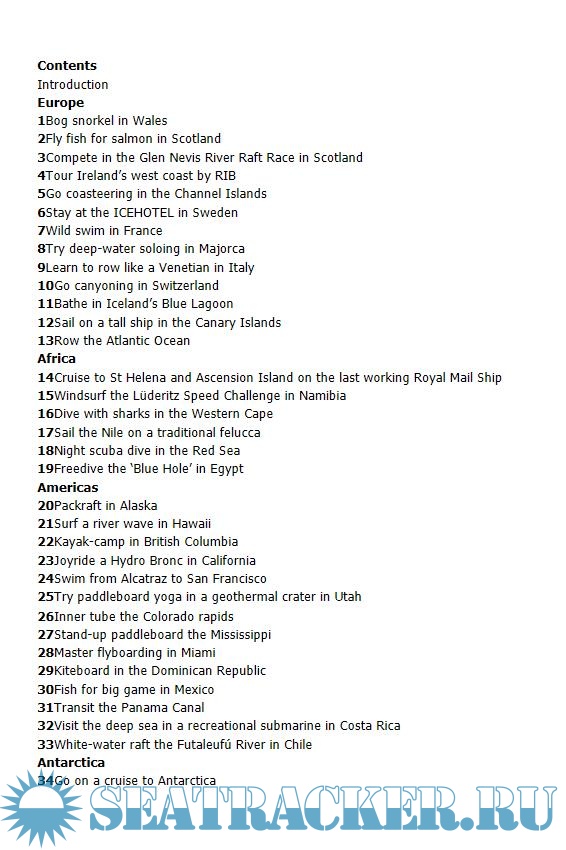 Description: From paddle-boarding the Mississippi to big game fishing off Mexico, from floating in the Dead Sea to swimming with jellyfish in Palau, from iceboating in Russia to sailing non-stop round the world, this book promises to inspire dreamers to become doers.