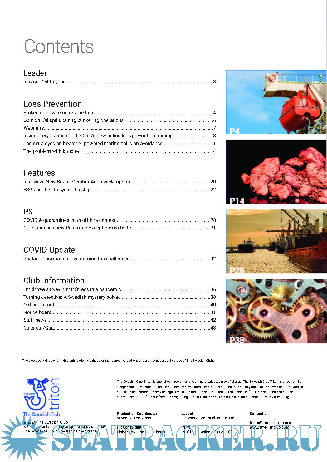 Year: 2021 Language: english Author: the Swedish Club Genre: Periodical (magazine) Format: PDF Quality: eBook Pages count: 44 Description: The latest edition of Triton no.3 2021 December The Swedish Club Triton is published three times a year and distributed free of charge.The Swedish Club Triton is an editorially independent newsletter and opinions expressed by external contributors are not necessarily those of The Swedish Club. Articles herein are not intended to provide legal advice and the Club does not accept responsibility for errors or omissions or their consequences. In this issue, we cover many interesting topics, such as: - ESG and the life cycle of a ship are the first in a series of articles exploring environmental considerations throughout the lifetime of a ship. - The Club welcomes one new Board member: Andrew Hampson, Chief Executive Officer, Tufton Investment Management Limited. - The extra eyes on board: AI powered marine collision avoidance. - Loss Prevention safety scenario: Broken davit wire on rescue boat. - P&I - COVID & quarantines in an off-hire context. - Turning detective: A Swedish Club mystery solved