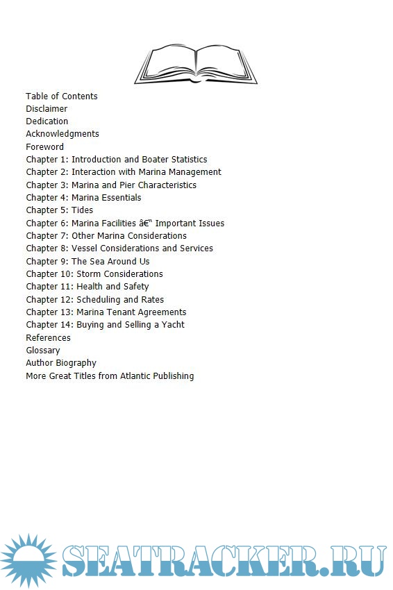 Year: 2015 Language: english Author: McDowell S.E. Genre: Guide Publisher: Atlantic Publishing Group Inc ISBN: B013VP3QEW Format: EPUB Quality: eBook Pages count: 188 Description: Find practical tips including selecting the best type of slip, approaching Marina Management, assessing amenities, interpreting vessel insurance policies. Also covered is tides, storm surge, tsunamis and lightning and more. Additional info: About the Author Present Interests: Dr. McDowell is retired from a successful career in physical oceanography and now enjoys cruising the Florida Keys and The Bahamas aboard his 60-ft motor yacht, Someday Is Now. Today, his first priority is writing non-fiction on maritime topics, as well as fiction thrillers pertaining to the sea and ocean espionage.