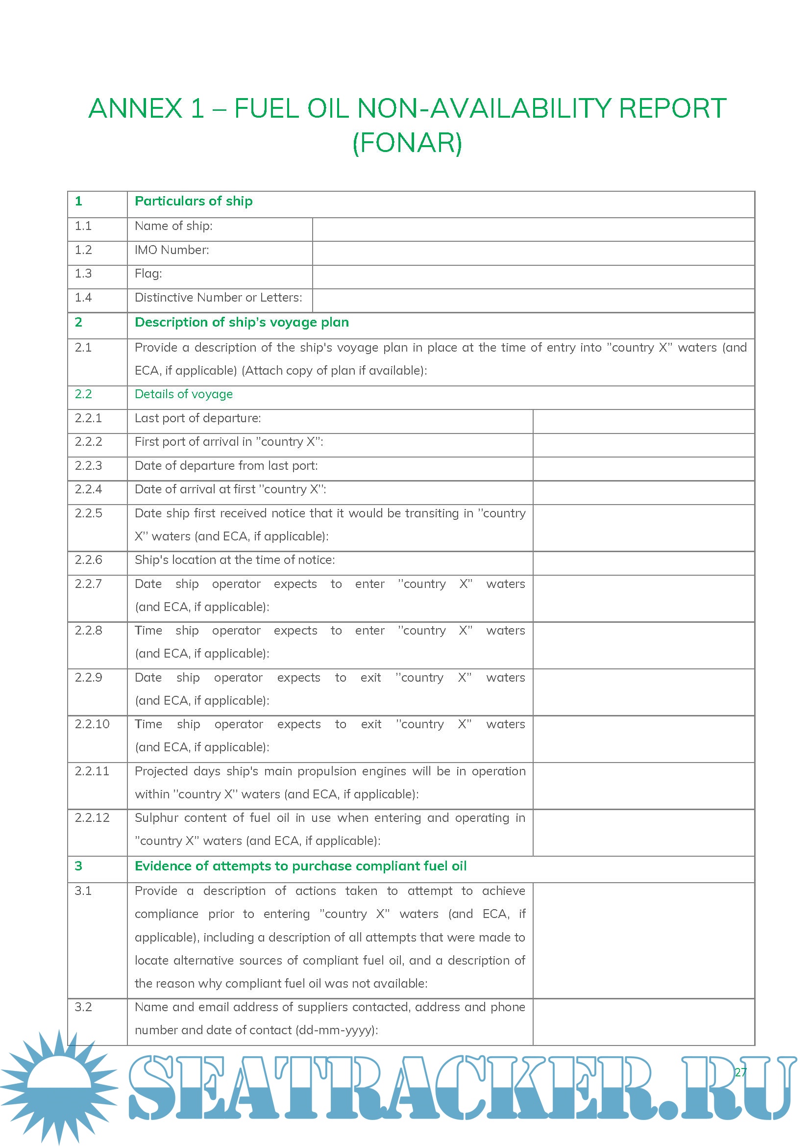 The Ship Oil Fuel Non-availability Report (FONAR);