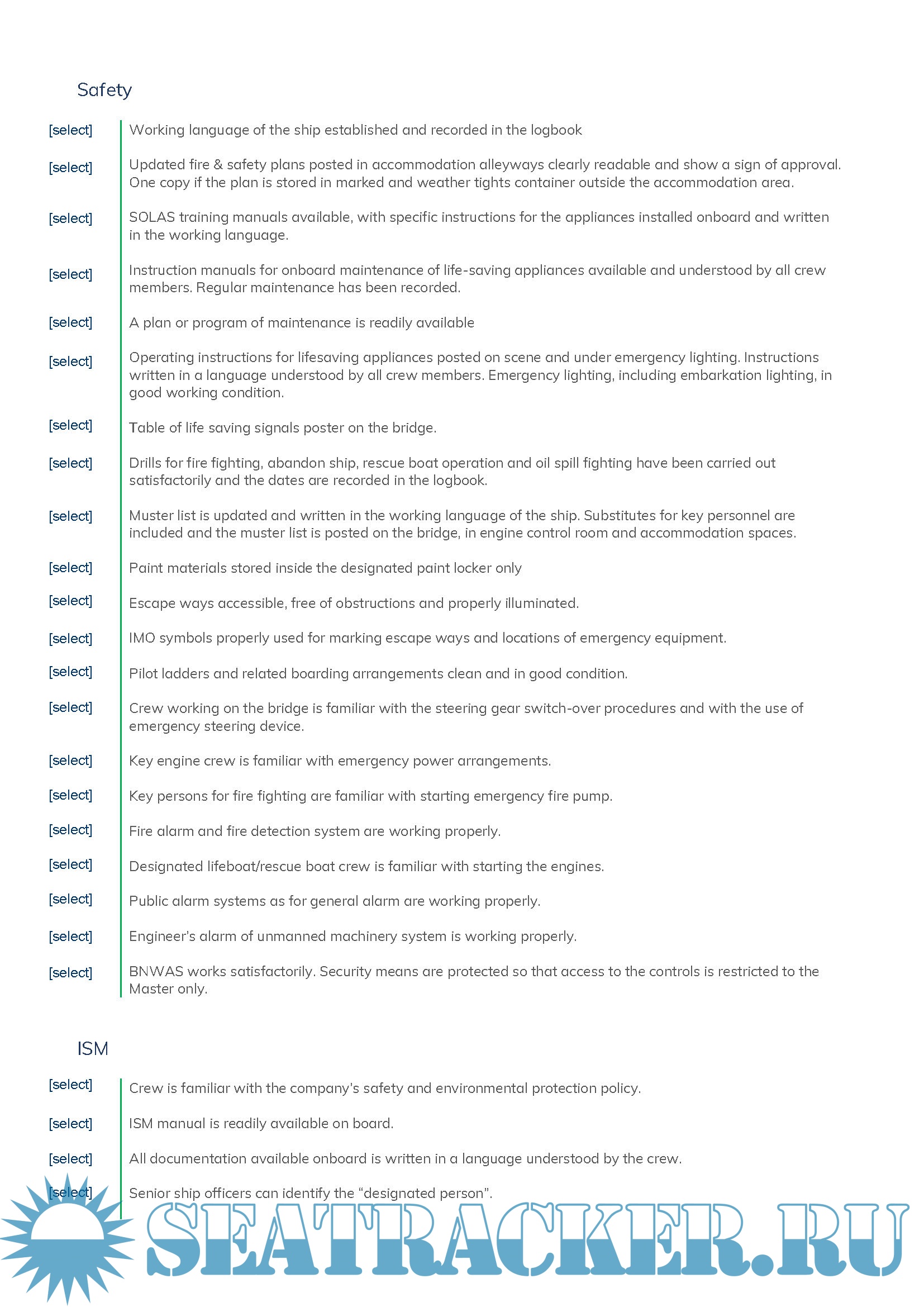 The checklist should be used by the ship’s crew prior to arrival into port. The categories of inspection included in this checklist have been identified as items that lead classed ships to detention.