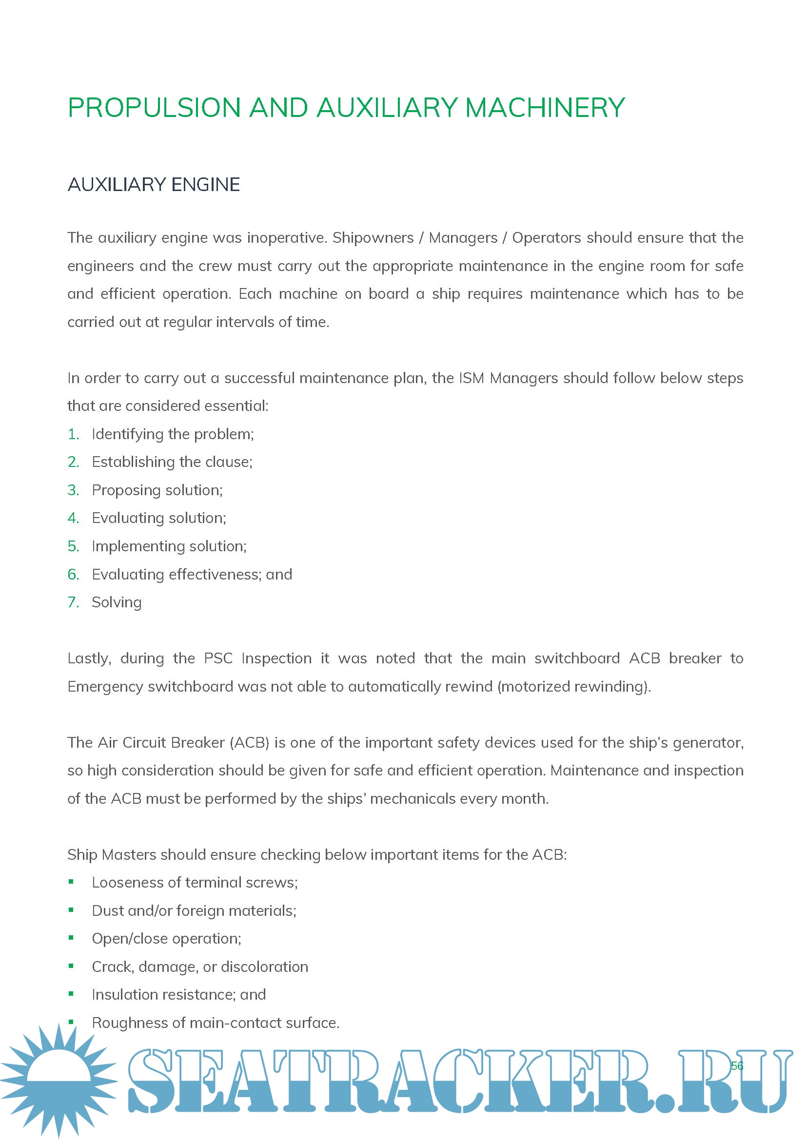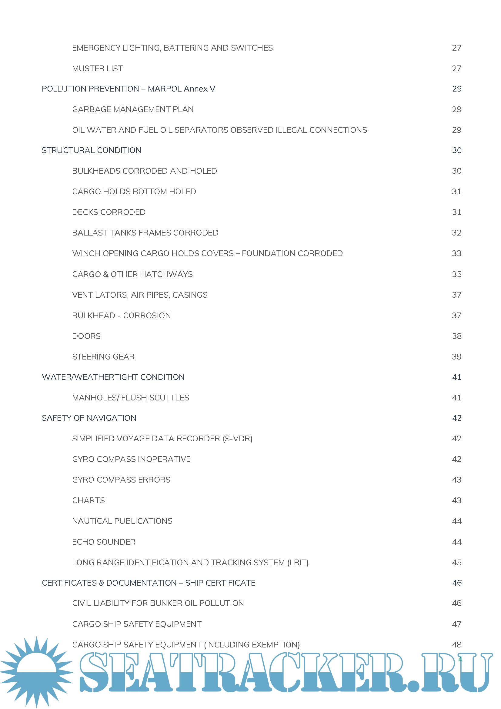 Year: 2021 Language: english Author: DBS Genre: Guide Format: PDF Quality: eBook Pages count: 58 + 13 Description: The purpose of this Publication is to summarize the most important deficiencies exported from several Port State Control (PSC) Inspections that resulted into a vessel’s detention. Many of the deficiencies in this document show three major issues are the main cause of those detainable deficiencies: the lack of planned maintenance properly followed by the crew on board, the lack of Crew Familiarization with SMS system and the lack of monitoring by the ISM Company. Ship Owners/ Ship Managers / Operators should follow up on the following deficiencies to avoid recurrence on board their ships. The checklist should be used by the ship’s crew prior to arrival into port. The categories of inspection included in this checklist have been identified as items that lead classed ships to detention. If any of the items outlined in this checklist are not in good working condition or found not incompliance, the crew should take appropriate steps for a corrective action to be implemented prior to arrival into port. :