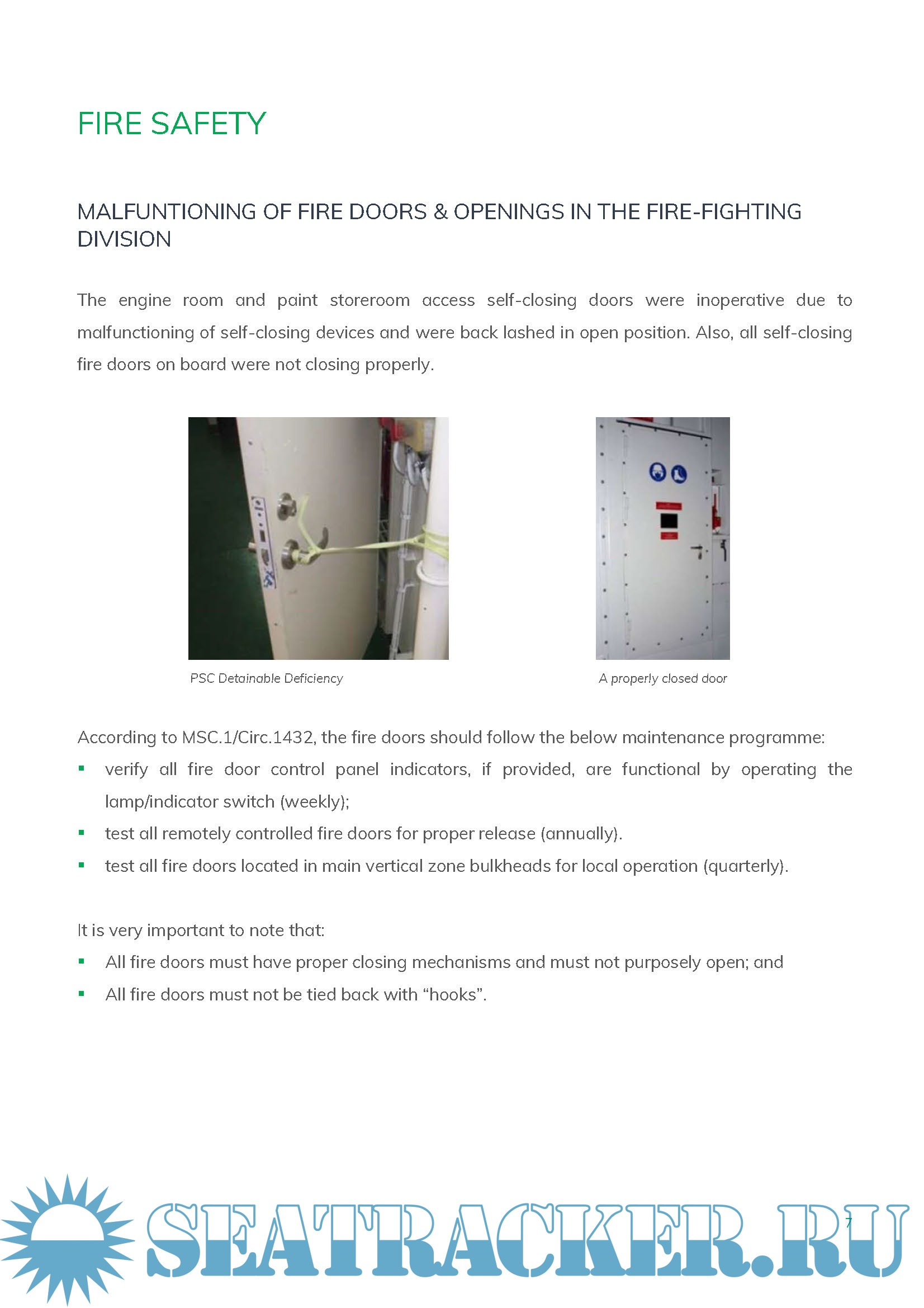 Many of the deficiencies in this document show three major issues are the main cause of those detainable deficiencies: the lack of planned maintenance properly followed by the crew on board, the lack of Crew Familiarization with SMS system and the lack of monitoring by the ISM Company.