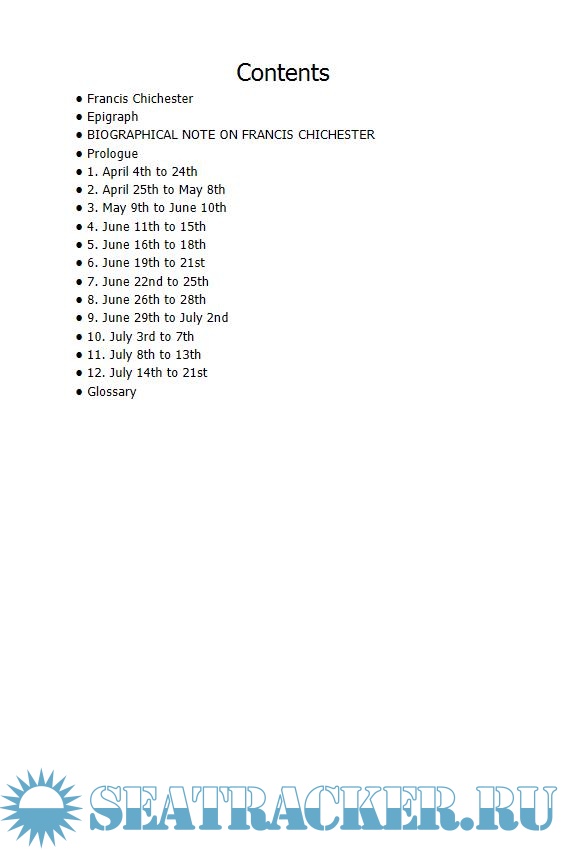 Year: 2012 Language: english Author: Chichester F. Genre: History Publisher: Bello ISBN: 1447234030 Format: EPUB Quality: eBook Pages count: 133 Description: A brave man in a small boat alone on a big sea. Vintage Chichester, written after the 1960 Singlehanded Transatlantic Race, before Sir Francis made his epic, solo voyage around the world.Chichester was a courageous explorer and gifted navigator. In this book he shares his fears and moments of exhilaration on the Atlantic. The result is both a practical tale about Gipsy Moth III's sailing victory, and a day-by-day sharing of adventure by her skipper. Additional info: About the Author Aviator and sailor Sir Francis Chichester is best known for being the first and fastest person to sail around the globe single-handedly in The Gipsy Moth IV. Following this achievement he wrote several books and made films about his sailing experiences. Born in Devon and educated at Marlborough College, Chichester emigrated to New Zealand at the age of 18 and spent ten years in forestry, mining and property development. On his return to England he learned to fly, and in the original Gipsy Moth seaplane he became the first person to complete an East-West solo flight across the Tasman Sea, for which he was awarded the inaugural Amy Johnson Memorial Trophy. Chichester wrote many popular books on his air adventures, and during WWII he wrote the manual that single-man fighter pilots used to navigate across Europe. In 1964 Chichester published his autobiography, the bestselling The Lonely Sea and the Sky, and was knighted three years later for 'individual achievement and sustained endeavour in the navigation and seamanship of small craft'. Chichester used his navigation experience to create a successful map-making company, Francis Chichester Ltd, which today still publishes pocket guides and maps which are sold throughout the world.