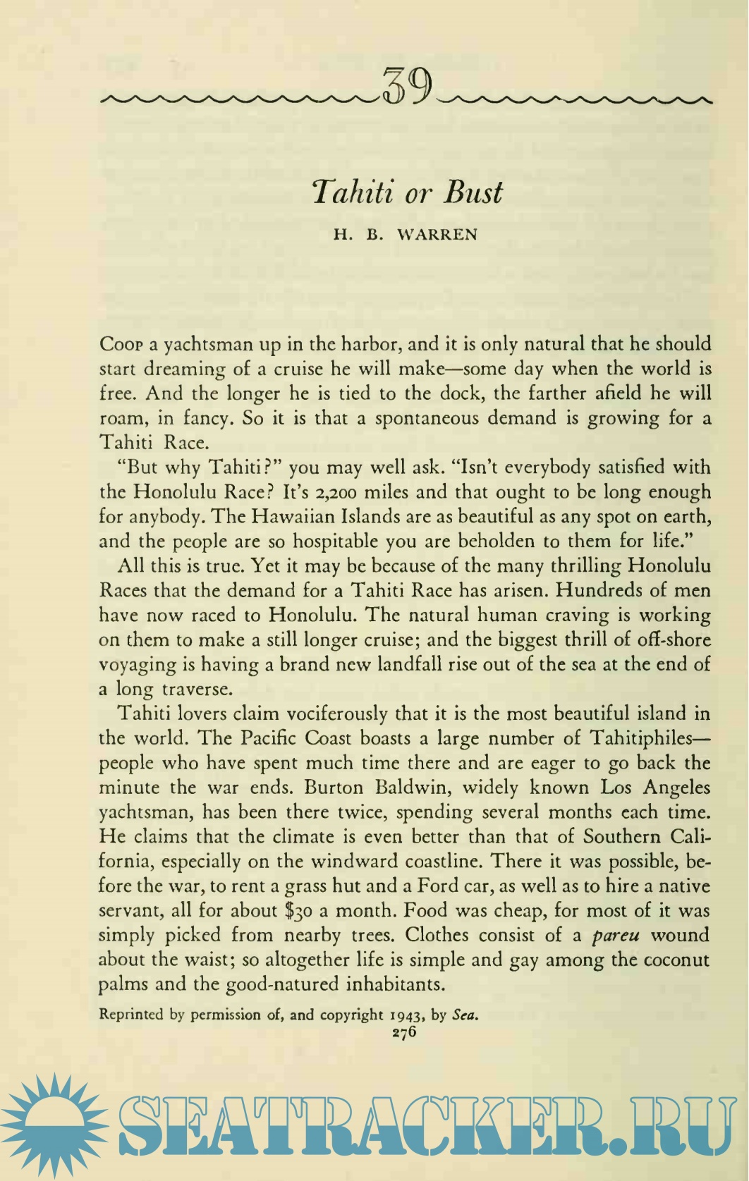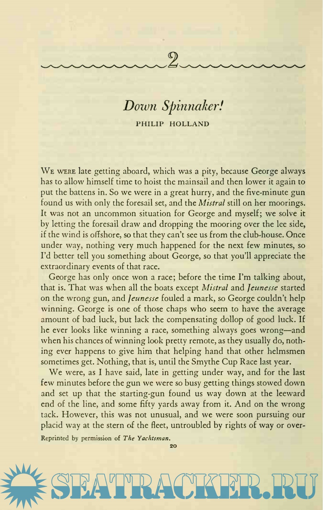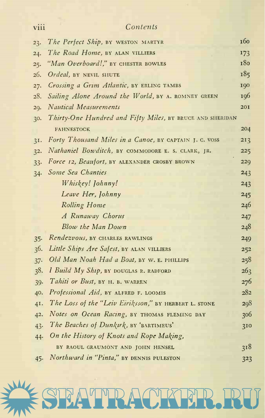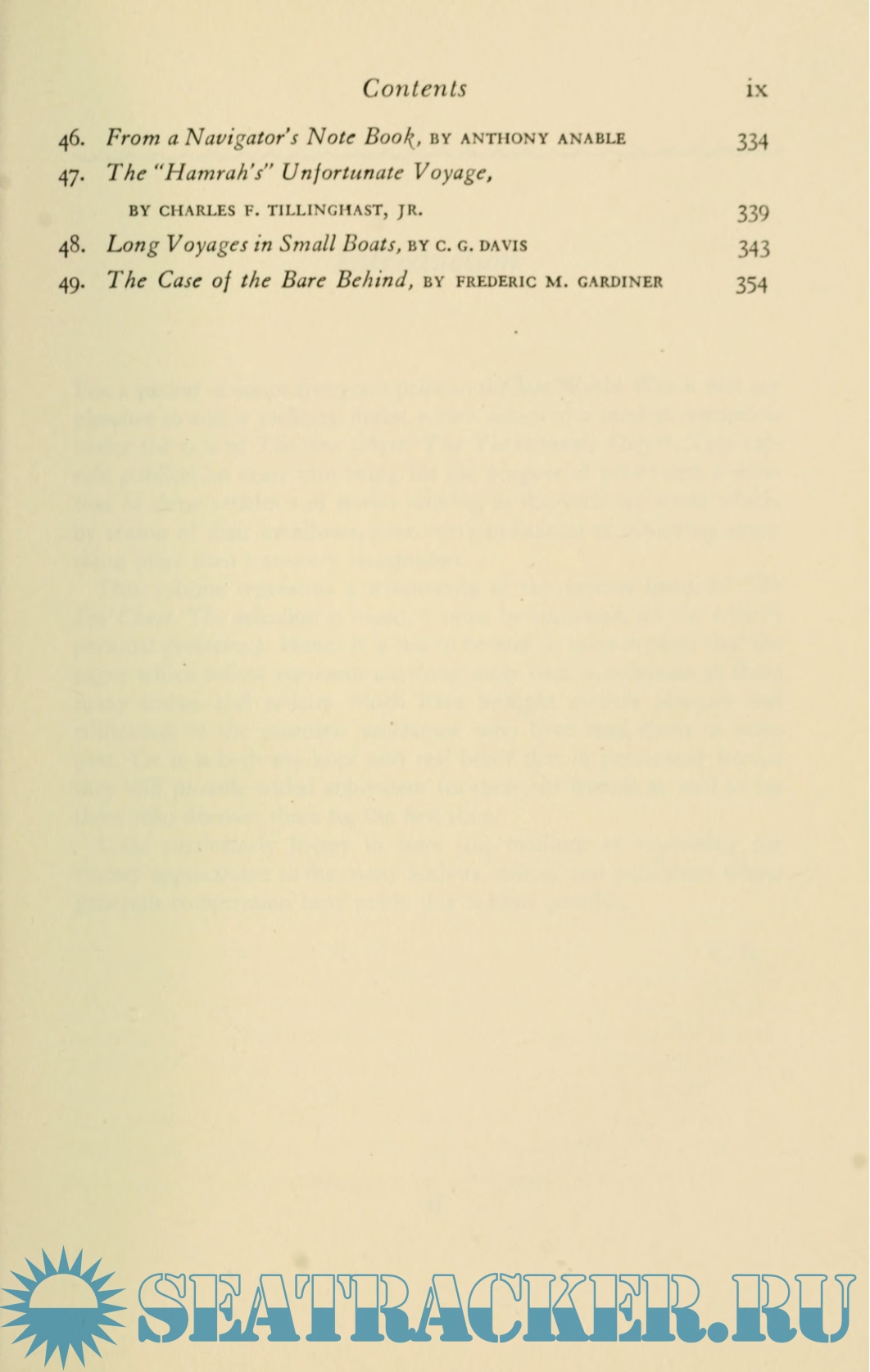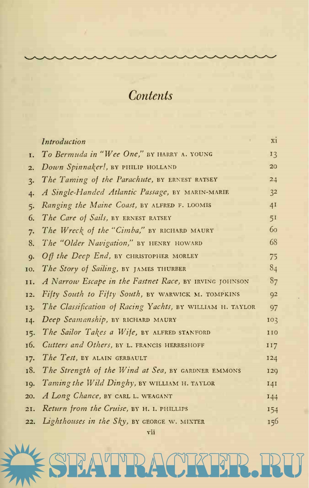 This volume represents a winnowing of the various issues of The Sea Chest. The selection is based, it must be confessed, on the editor's personal preference. Hence it is not to be said or even implied that the pages which follow represent anything more than a collection of those many stories and articles which have brought endless pleasure and edification to the countless yachtsmen who have read them in years past. Yet it is both my hope and real belief that in permanent format they will provide added enjoyment for their old friends as well as for those who discover them for the first time.