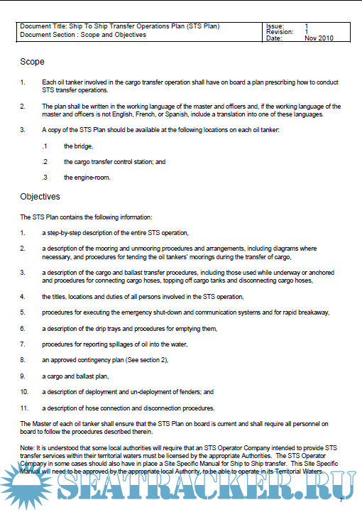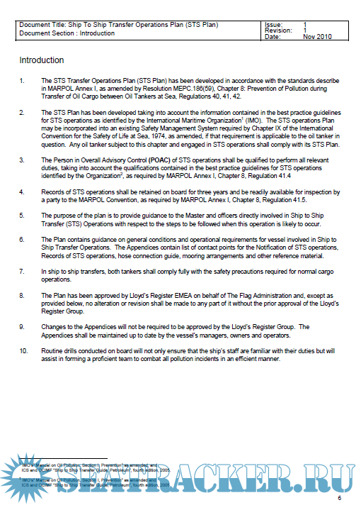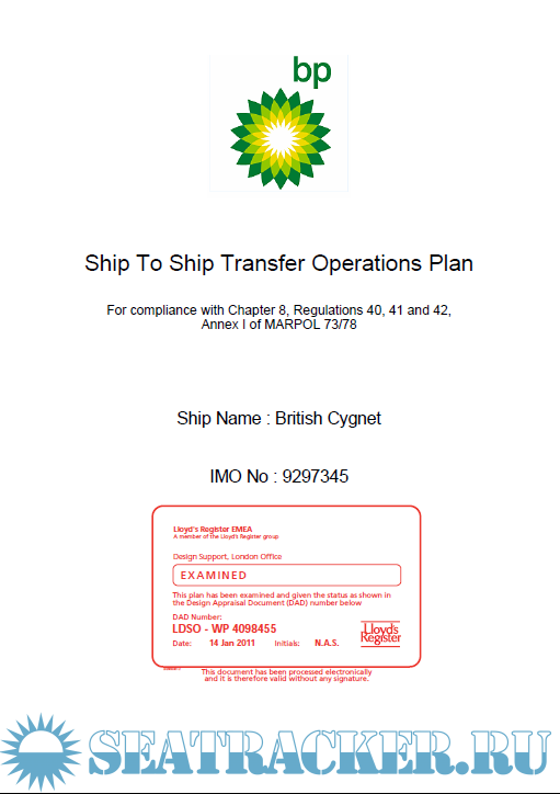 Ship to Ship (STS) Transfer Operations Plan - BP Shipping [2011, PDF]