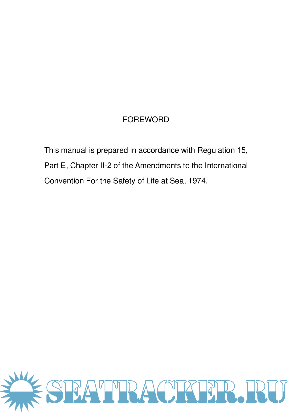 Description: This manual is prepared in accordance with Regulation 15, Part E, Chapter II-2 of the Amendments to the International