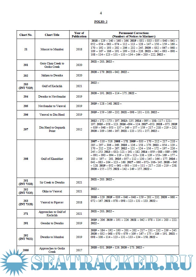 Additional info: Refer Indian Notices to Mariners: Special Edition
