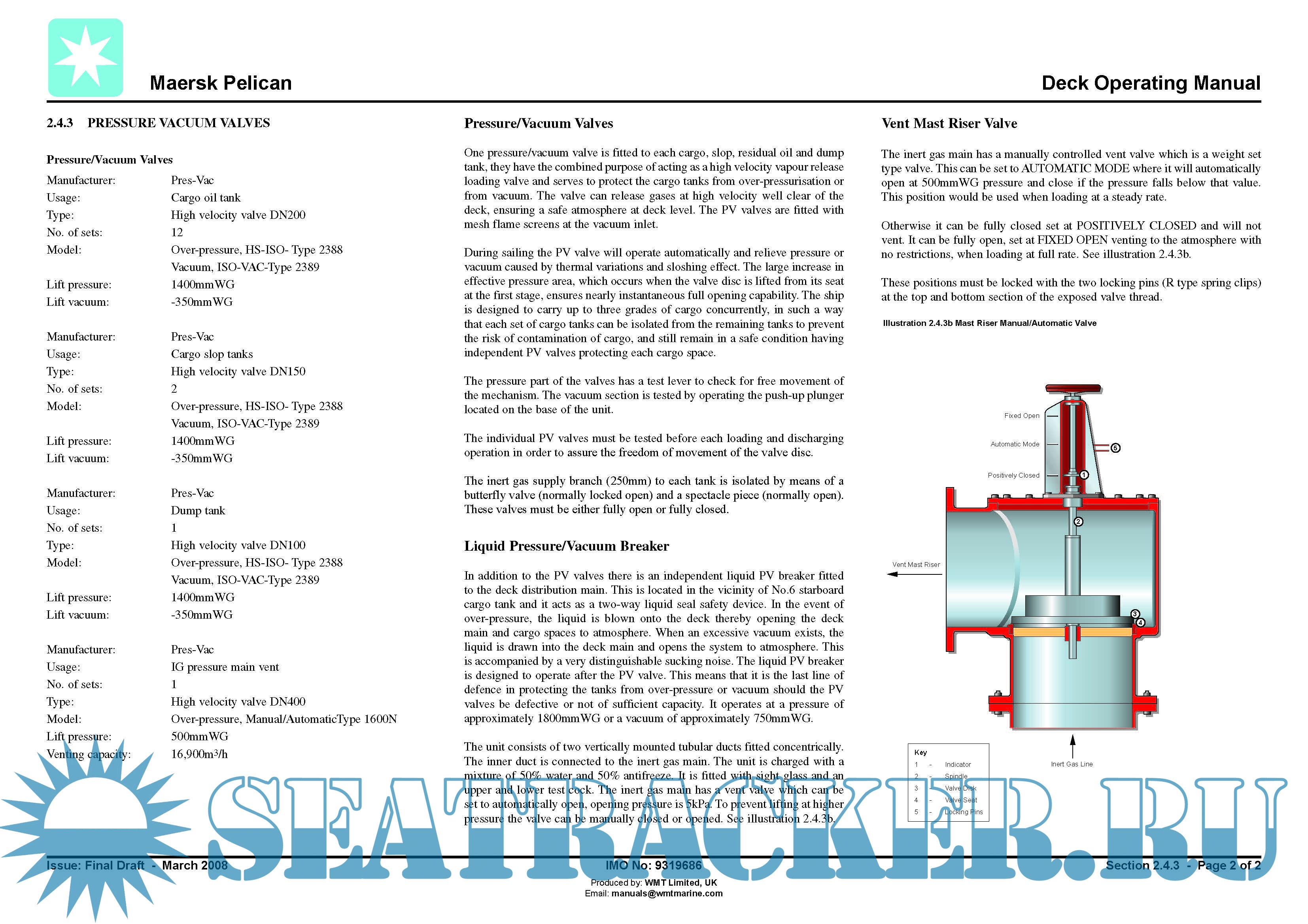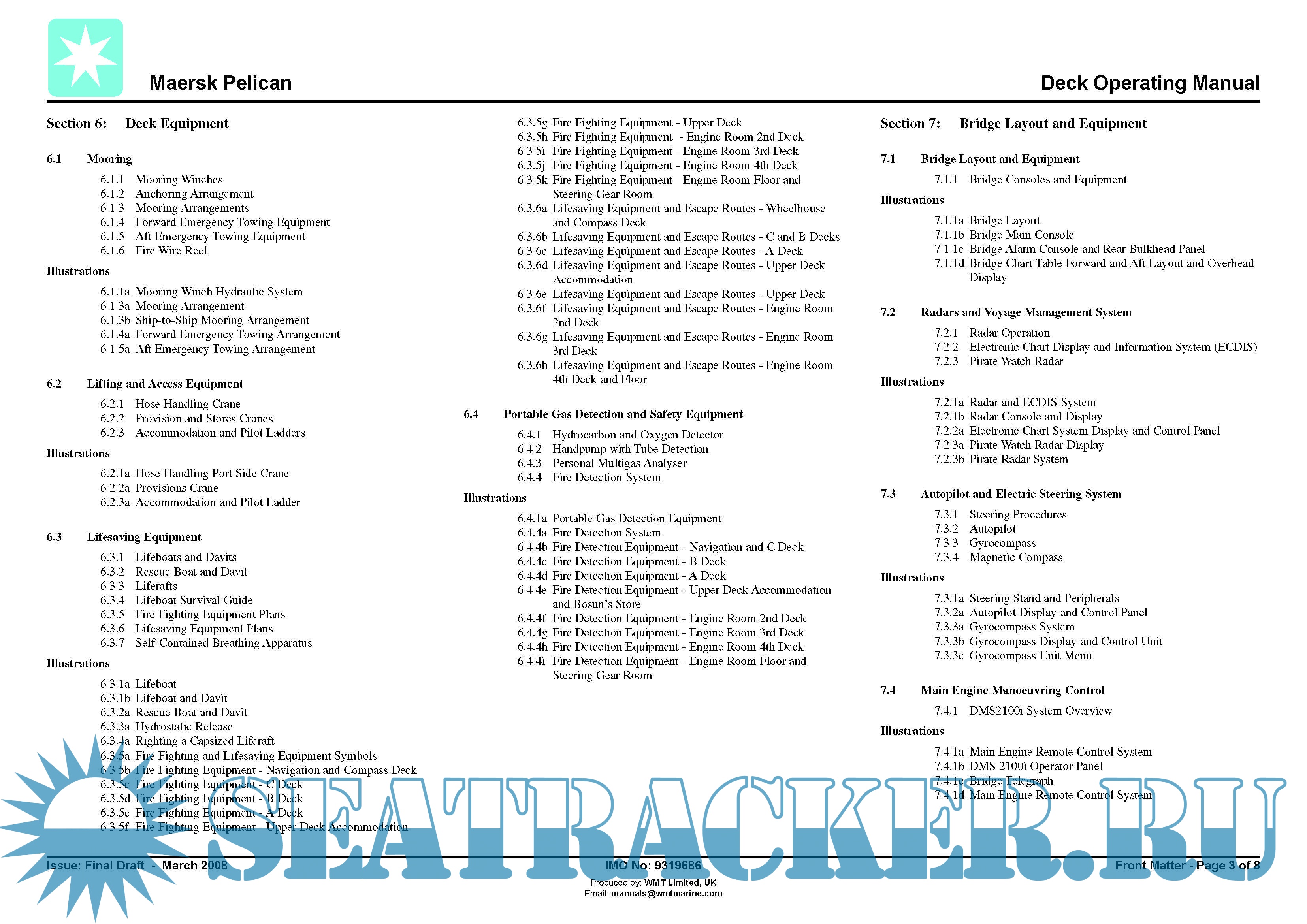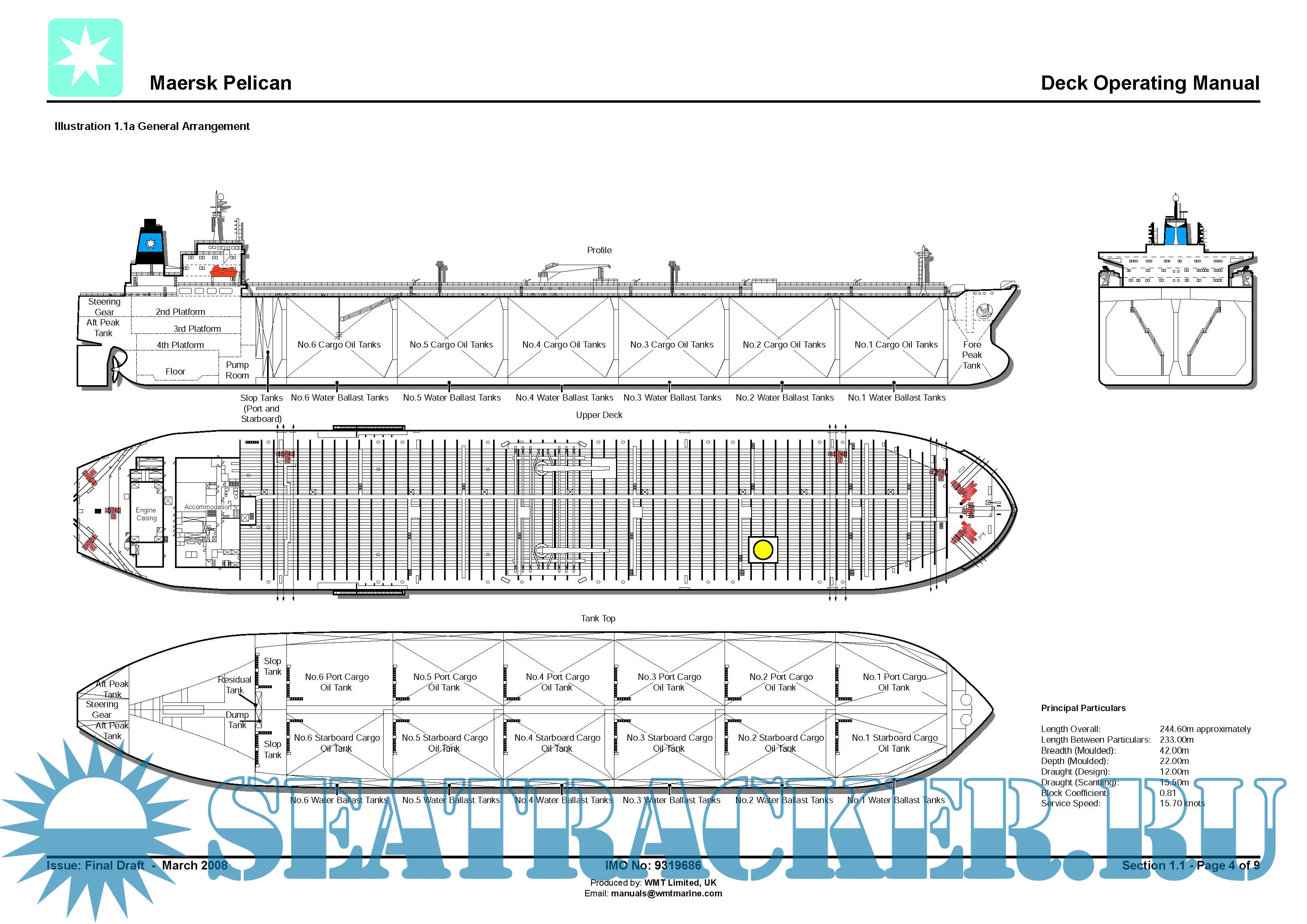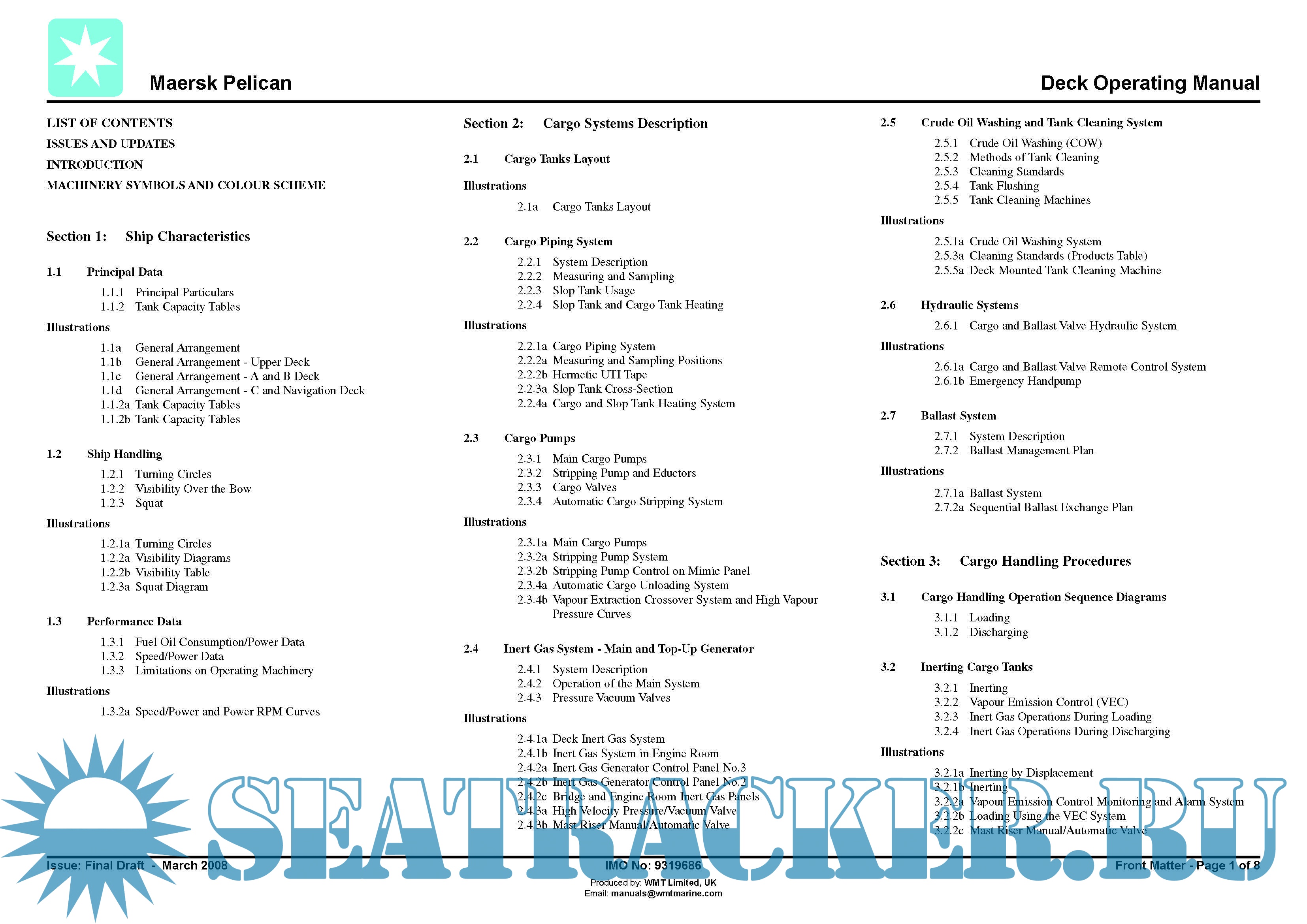 Year: 2008 Language: english Author: WMT Limited, UK Genre: Manual Format: PDF Quality: eBook Pages count: 436 Description: Maersk Pelican (now “Timberwolf”) (IMO: 9319686) is an Oil Products Tanker (OPT) built in 2008 by Dalian Shipbuilding Industry Group - Dalian, CHINA. Currently sailing under the flag of Islas Marshall. Its gross tonnage is 61724 tons.