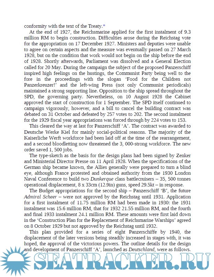Year: 2014 Language: english Author: Gerhard Koop Genre: History Publisher: Seaforth Publishing ISBN: 978 1 84832 196 0 Format: PDF Quality: eBook Pages count: 374 Description: The warships of the World War II German Navy are among the most popular subjects in naval history, and one of the best collections is the concise but authoritative six volume series written by Gerhard Koop and illustrated by Klaus-Peter Schmolke. Each book contains an account of the development of a particular class, a detailed description of the ships, with full technical details, and an outline of their service, and are heavily illustrated with plans, battle maps and a substantial collection of photographs. The first five volumes of this much sought after series are now available in paperback, with the sixth volume German Light Cruisers of World War II, planned for release in the fall of 2014. This volume covers the three ships of a design so revolutionary that it defied conventional categories. Deutschland (later renamed Lützow), Admiral Scheer and Admiral Graf Spee were simply termed panzerschiffe (armored ships) by the Germans, but they were known to their opponents by the far more evocative term Pocket Battleships.