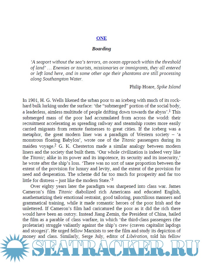 Year: 2012 Language: english Author: Richard Davenport-Hines Genre: History Publisher: HarperPress ISBN: 978-0-00-7 32164-3 Format: PDF Quality: eBook Pages count: 396 Description: Marking the centenary of the Titanic disaster, ‘Titanic Lives’ is an utterly compelling exploration of the lives of the passengers and crew on board the most famous ship in history. The RMS Titanic was built as one of the world's largest and most luxurious liners. A marine Ritz, it was a 45,000-tonne hotel of thin steel plates, travelling at a speed of 21 knots across the North Atlantic. On the night of 14 April 1912, midway through her maiden voyage, the seemingly unsinkable ship hit an iceberg, sustaining a 300-feet gash as six compartments were wrenched open to the sea. In little over two hours, the palatial Titanic nose-dived to the bottom of the ocean. Over 1,500 people perished in the freezing waters. Who were the people who by a cruel twist of fate happened to be travelling on the ship? In this original and timely book, Richard Davenport-Hines views the great liner as a paradigm of Edwardian society. At the bottom of the ship was the steerage class, filled with emigrants hoping for a better life in the New World. Above them were hundreds of second-class passengers buoyed up by their prosperous respectability. On the upper decks were the hereditary rich and those of inconceivable wealth – Americans like John Jacob Astor IV, who was found with £2000 and $4000 in sodden notes in his pockets. Bringing together over 2,000 passengers and crew from every class and every continent, ‘Titanic Lives’ tells their stories, re-creating the complexities, disparities and tensions of life one hundred years ago.