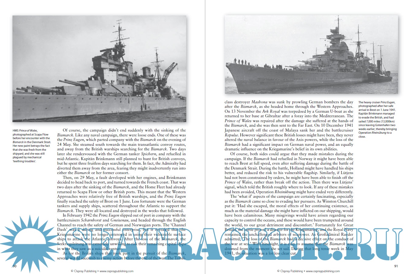 Year: 2011 Language: english Author: Angus Konstam Genre: History Publisher: Osprey Publishing ISBN: 978-1849083836 Format: PDF Quality: Scanned pages + text layer Pages count: 98 Description: The breakout of the German battleship Bismarck into the North Atlantic in May 1941 was one of the most dramatic naval episodes of World War II (1939-1945). It took place at a time when the resources of the Royal Navy were stretched thinly, and the British Home Fleet were hard pressed to counter this powerful German warship, which was vaunted as the most powerful battleship in the world. For nine days she became the most sought-after vessel afloat, as the Home Fleet and Force H, based in Gibraltar, combed the seas in search of her. After days of fruitless searching, the lone German warship was spotted by a reconnaissance aircraft some 300 miles to the south-west of Ireland. Admiral Tovey, who commanded the Home Fleet from his flagship HMS Rodney ordered his warships to intercept her, and a great naval race began, with the Bismarck speeding towards the safety of the French ports, and the British doing their utmost to stop her. Despite overwhelming odds, with most Home Fleet craft too far away to intercept the German ship's flight to France, the Royal Navy ultimately managed to locate, damage and ultimately sink the great German battleship. In this new addition to Osprey's Campaign series, author Angus Konstam sheds new light on this race-to-the-finish, detailing the original plans, the British efforts to locate and damage the Bismarck, the Bismarck's extensive armor systems and her ultimate defeat in a highly illustrated format.