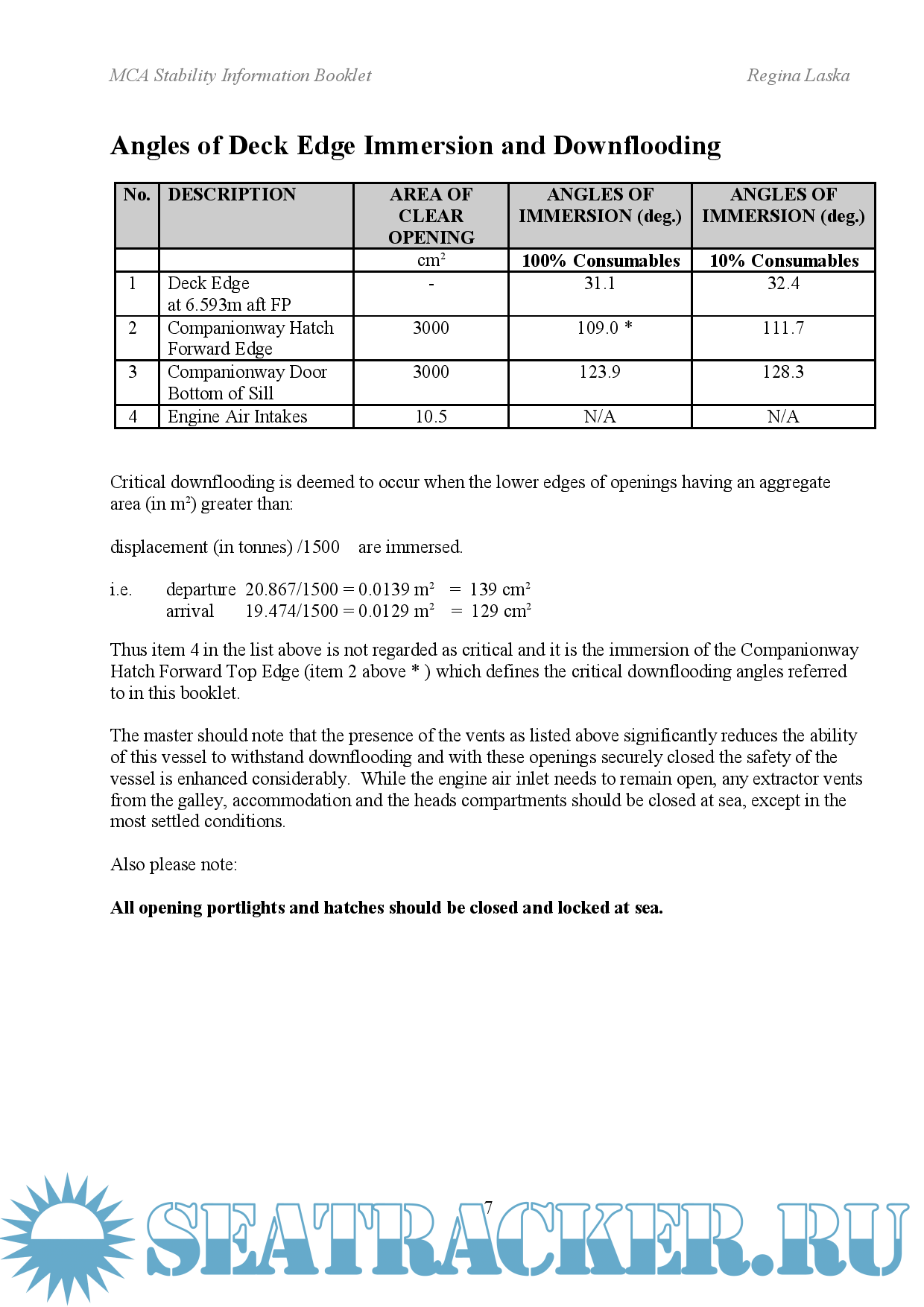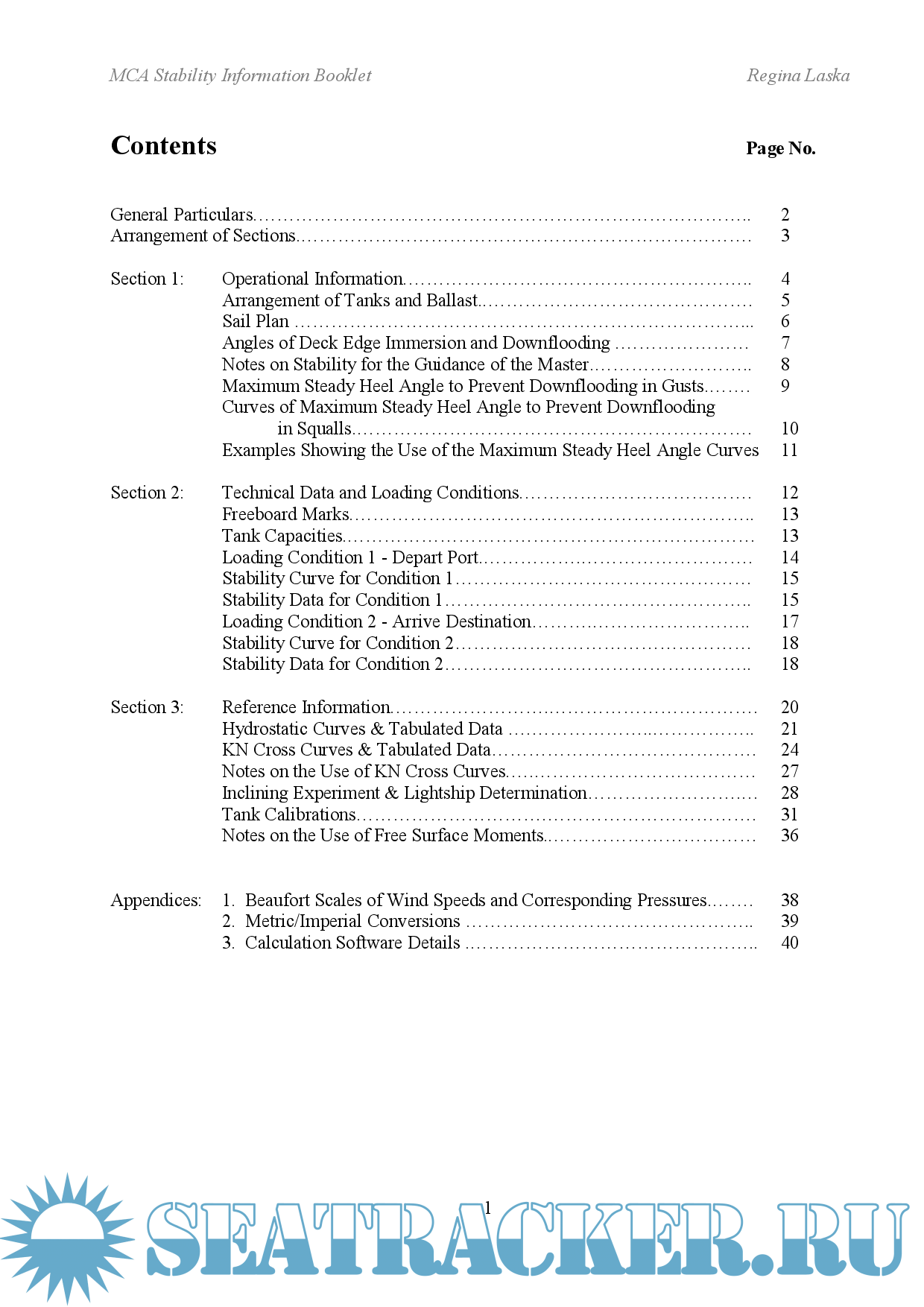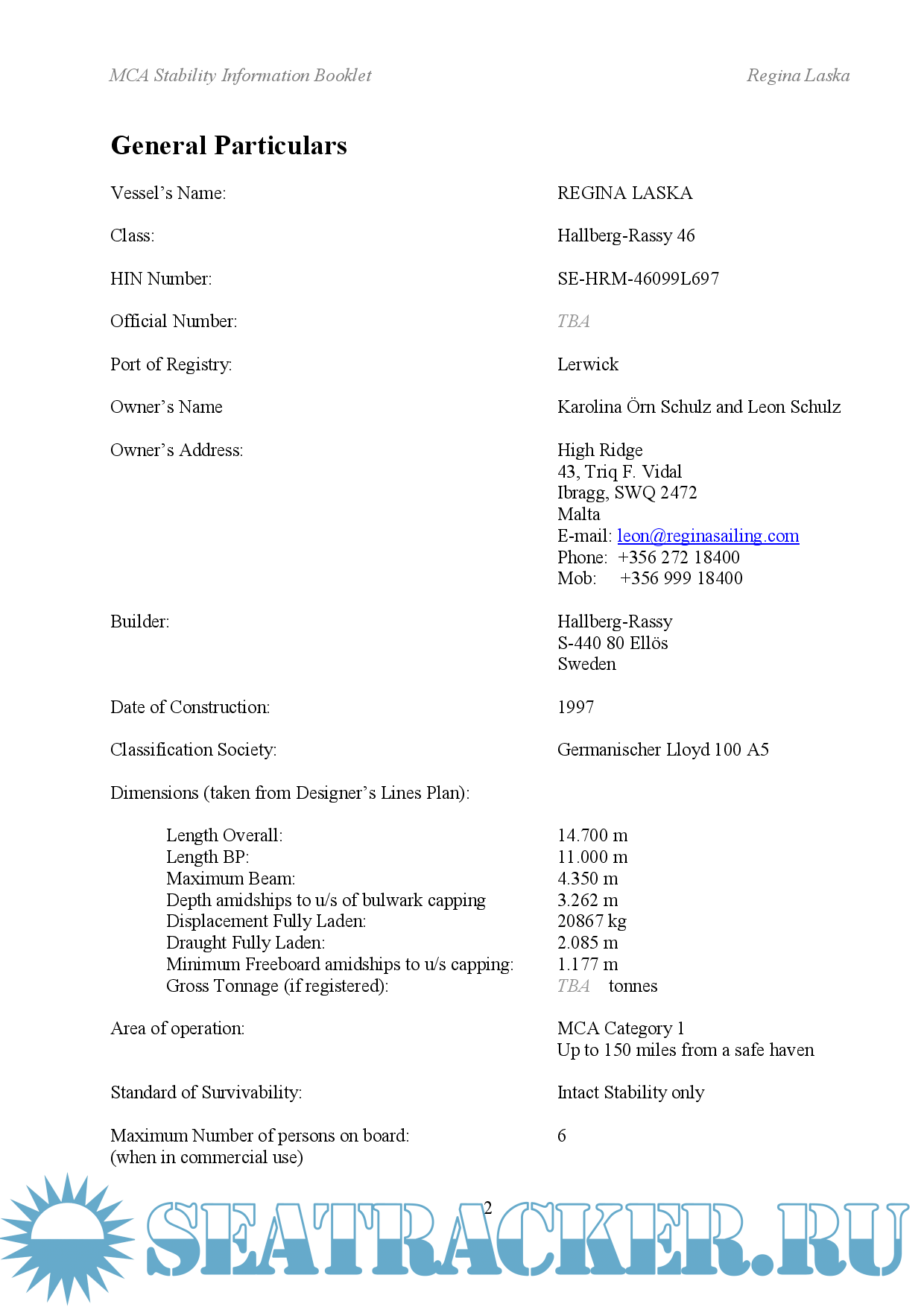 Sailing Yacht Regina Laska - MCA Stability Information Booklet