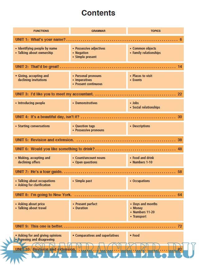 English Made Easy, Volume 1 consists of a total of 20 units arranged in groups of five. The first four units present language and provide learners the opportunities to practice as they learn. The first page of each unit has a list of all the words and phrases to be learned in that unit, together with a pronunciation guide. At the end of each unit, an entertaining story which uses the language that has just been learned is presented. The fifth unit in each group contains exercises designed to reinforce the language learned in the first four units.