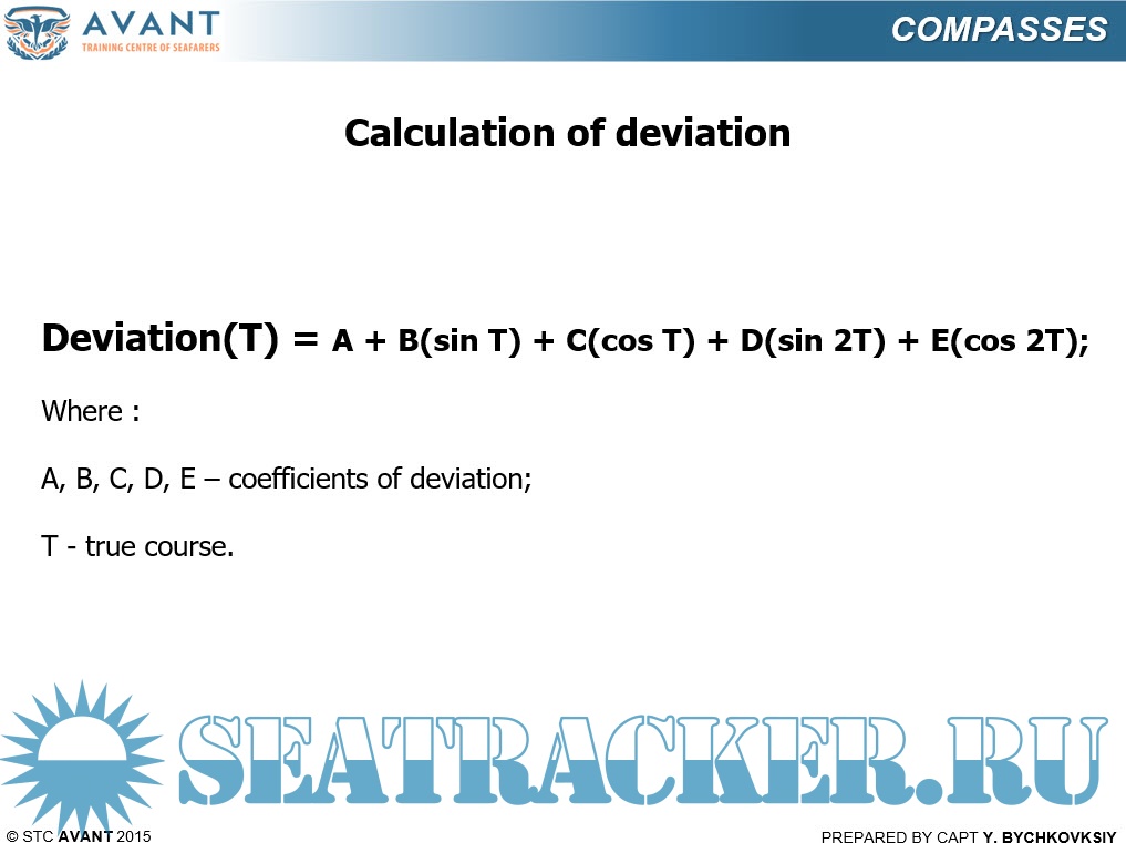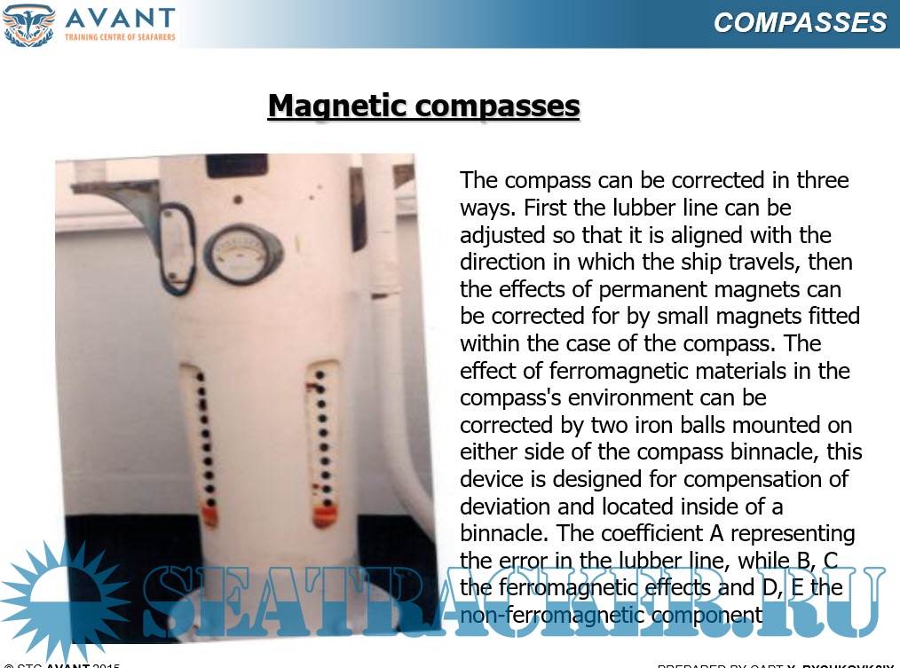 Year: 2015 Language: english Author: Capt. Y. Bychkovksiy Genre: Presentation Publisher: Avant Training Centre of Seafarers Format: PPT Quality: eBook Pages count: 25 Description: Presentation on Deviation of Magnetic Compass.